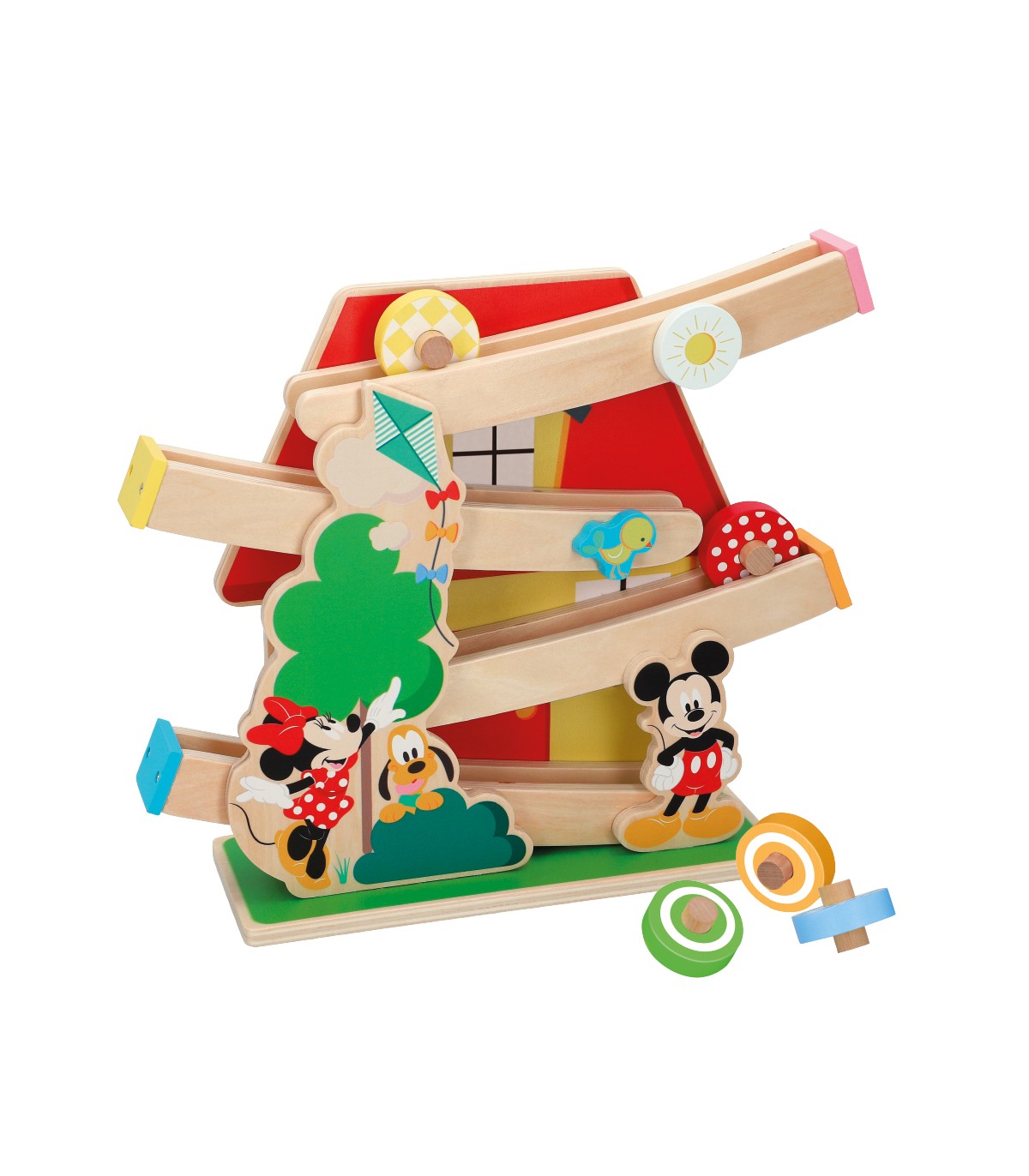 Põnev puidust rada, mis pakub mängulusti pikaks ajaks. Laps saab jälgida, kuidas värvilised rattad rajal veerevad ning neid ise uuesti ja uuesti raja algusesse panna. Arendab lapse koordinatsiooni ning loogilist mõtlemist. Komplektis on rada ning 5 lõbusates värvides ratast.