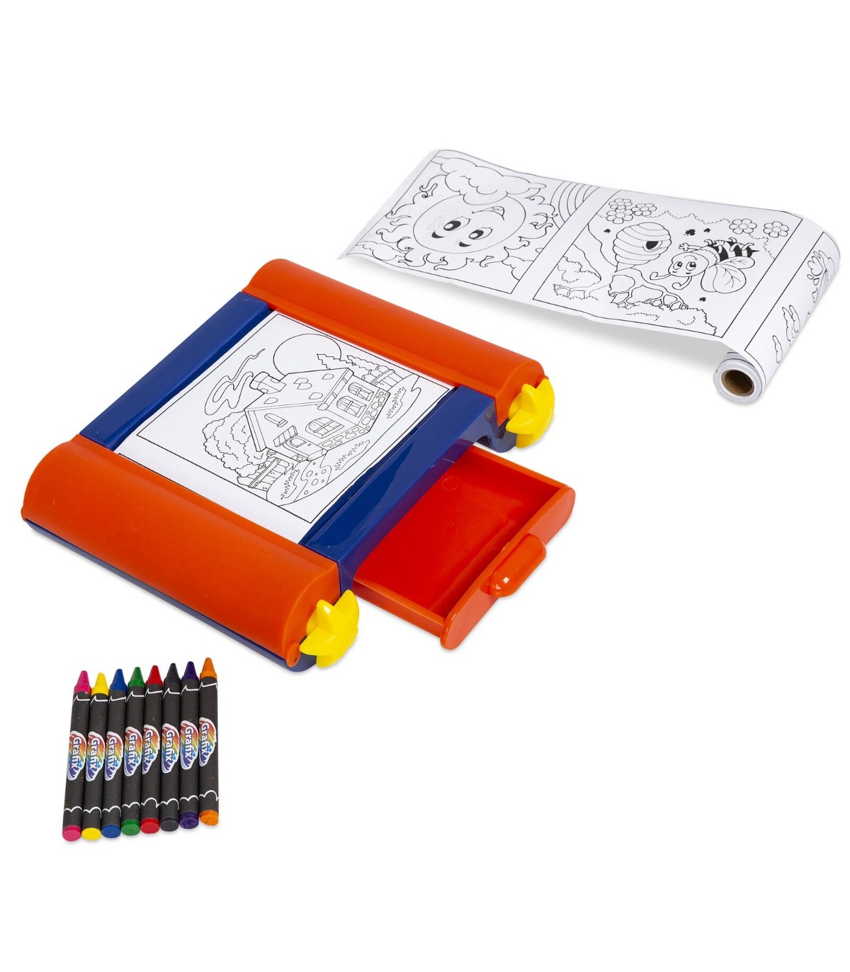 Põnev komplekt, millega laps saab mugavalt erinevaid pilte värvida. Komplektis on 50 pilti, mida värvida ning 8 kriiti. Pildid saab keerata rullist lauale ning laua salajases sahtlis saab hoiustada kriite, et need kaduma ei läheks. Tänu oma kompaktsusele on see ideaalne, mida reisile minnes kaasa võtta, et lastel tegevust oleks.