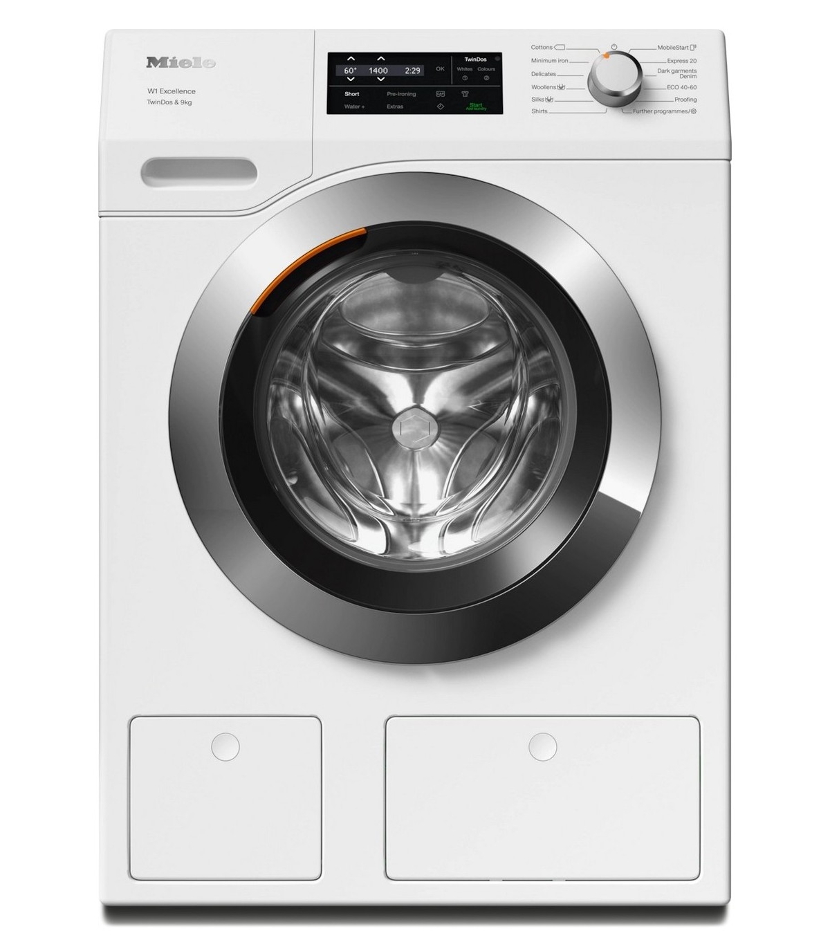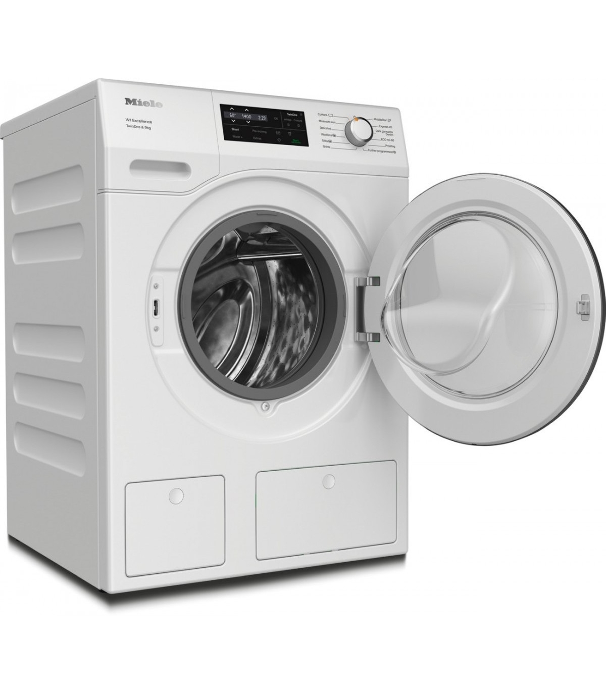 - Automaatne pesuvahendi doseerimine nupuvajutusega – “TwinDos”, Miele@Home, auruga eeltriikimine, CapDosing, ComfortSensor, trumli valgustus, AddLoad