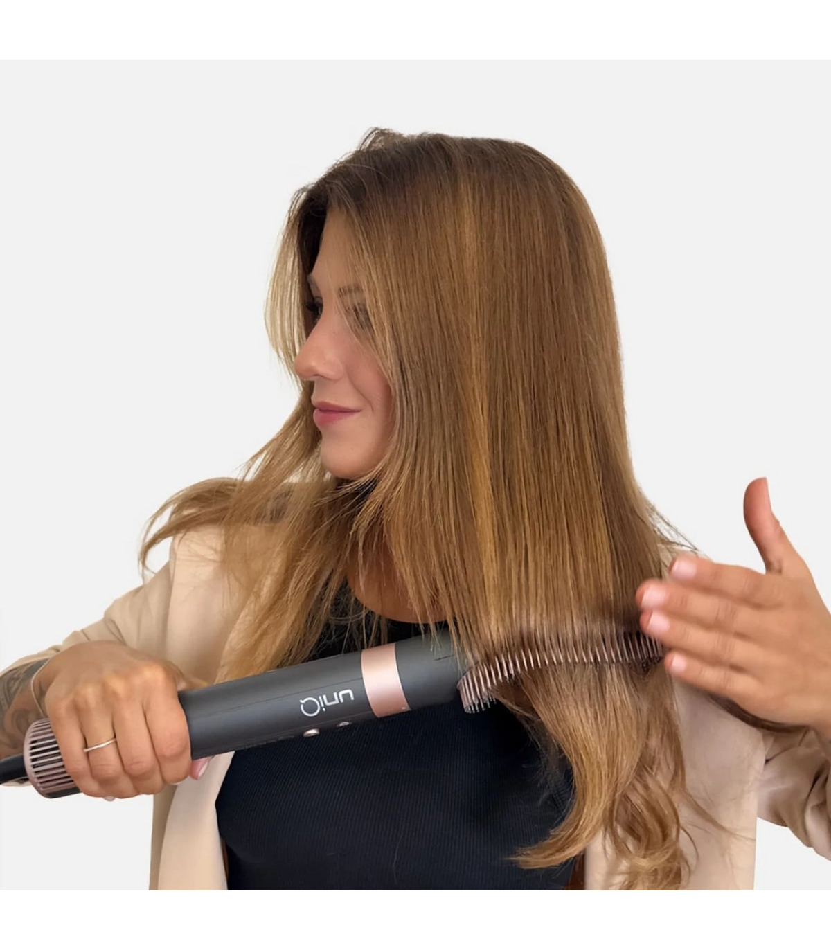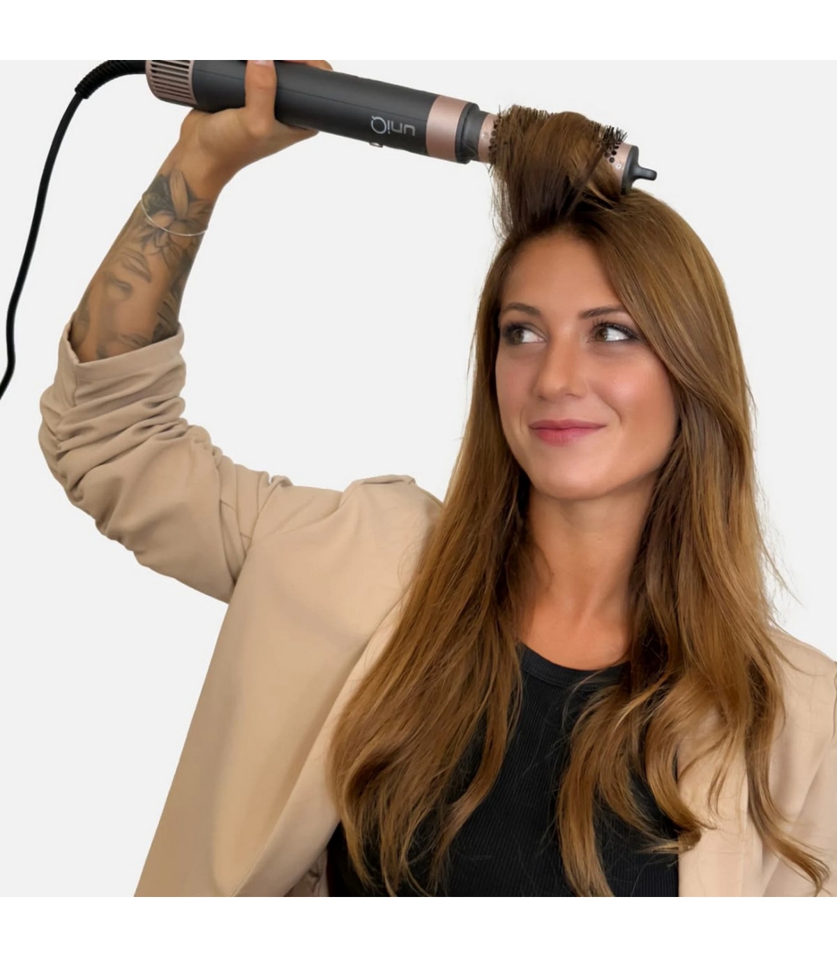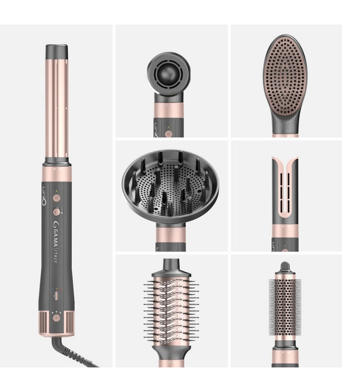 * 8 vahetatavat otsikut - Automaatne koolutaja ja Coanda-efekt, ovaalne hari (60 mm), ümar hari (32 mm), lame hari, sirgendav fööni otsik, fööni otsik, difuuser