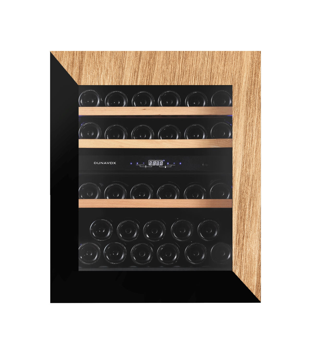 The new DAVG-32.80DOP.TO is a new addition to Dunavox's kitchen line. Gently push the door to access the bottles inside, in keeping with the handless kitchen trend. The wine cooler also has an LED touch screen and sliding wooden shelves..Overlay panel door options allows you to hide the wine cooler completely with furniture. The same furniture panel can be attached to the winecooler as the kitchen furniture has been made of. Overlay panel door option allows to hide the winecooler completely in the interior.