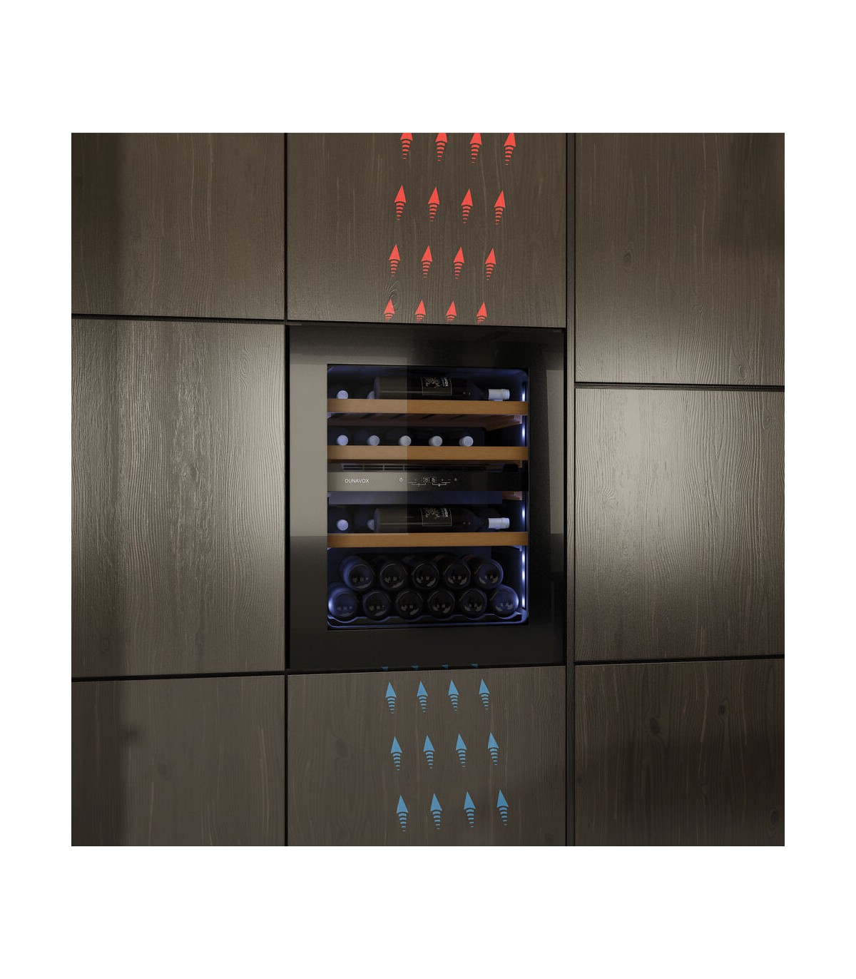 Dunavox are widely known for their quiet wine coolers, the high quality components used such as the fans means the integrated units are highly reliable and have a low operating noise of 36dB. Once installed, these units won't be noticeable.