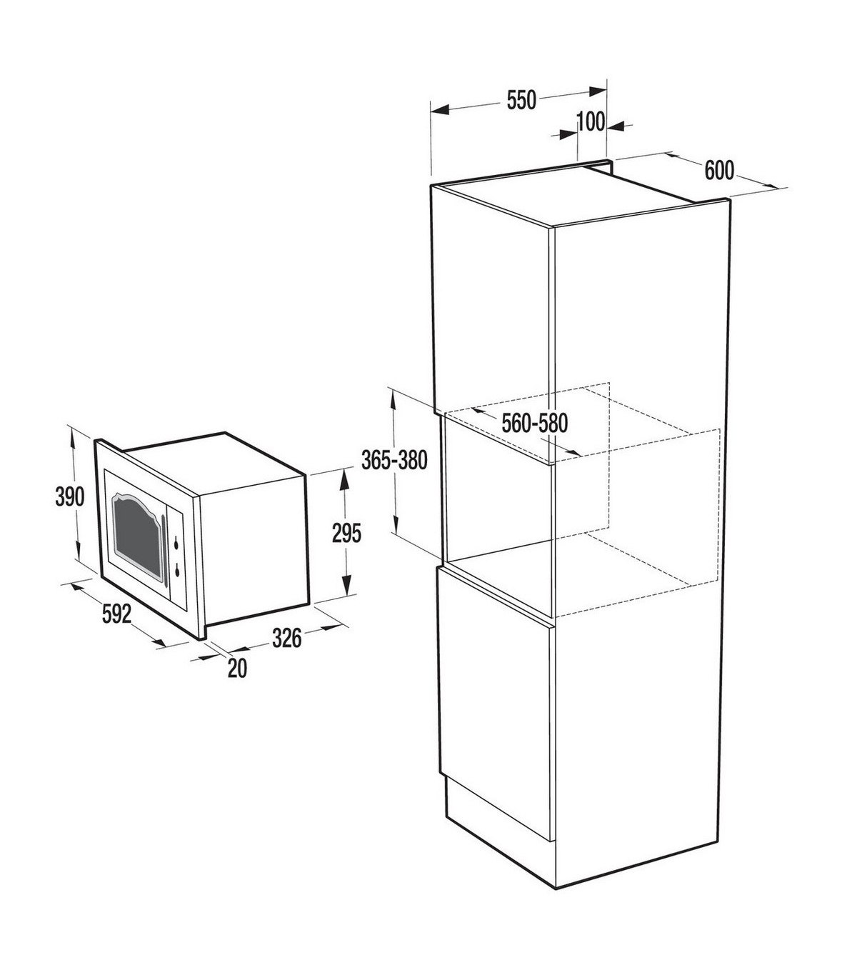 - Oven volume (L)