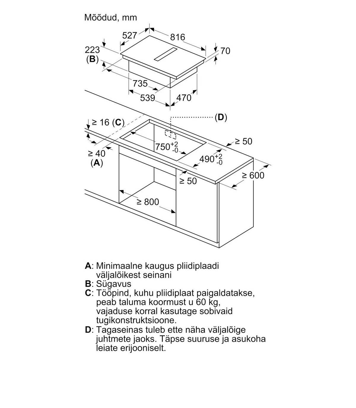 * Mõõdud: 223 x 802 x 522 mm (k/ l/ s)