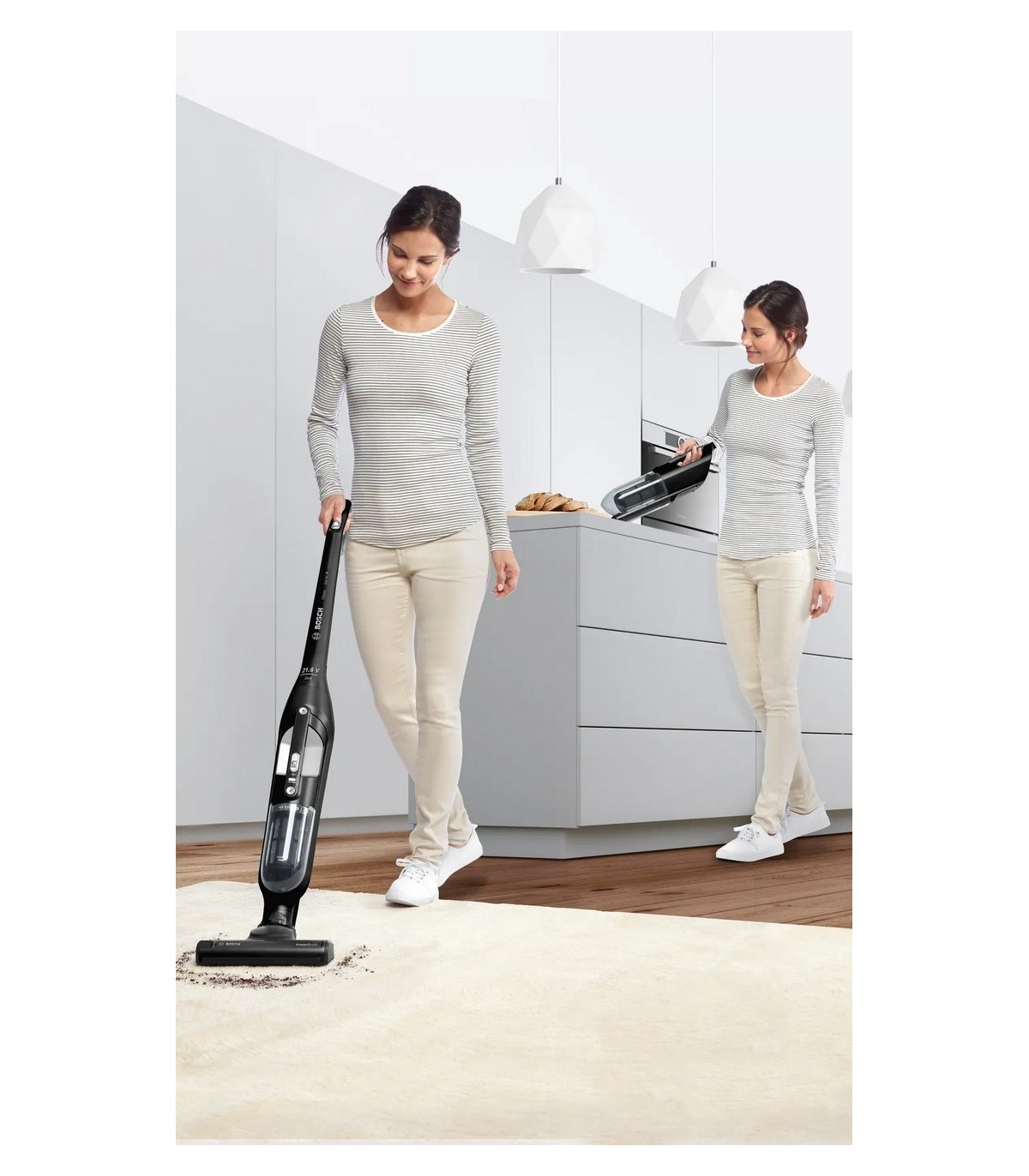 * Kaks-ühes: käsitolmuimeja ja vars-tolmuimeja ühes seadmes, sobib kõikidele põrandapindadele, 2 võimsusastet
