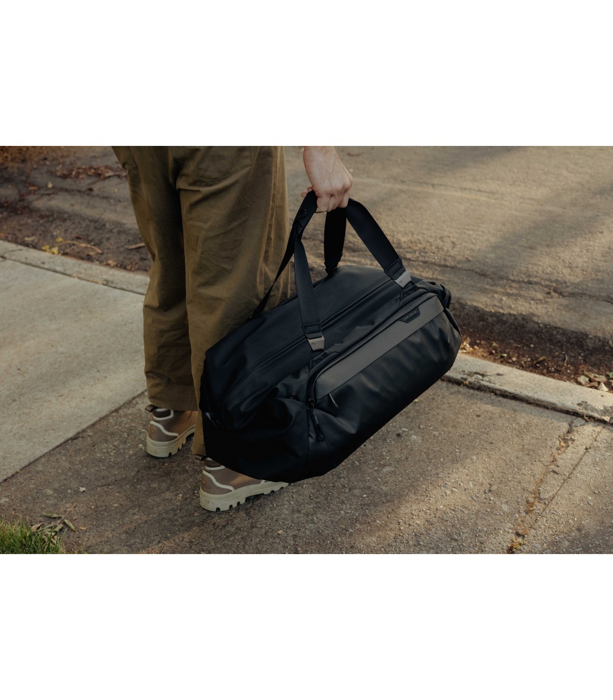 Travel Duffel on väga mitmekülgne oma paindlike kandmisviiside poolest. Esiteks saad maksimaalse mugavuse tagamiseks seda kanda kahe õlarihmaga seljas. Teiseks, saad seda kanda sling-tüüpi kotina kasutades vaid üht õlarihma. Kolmandaks on võimalik seda kanda duffel-tüüpi kotina õlal, et pääseda tervele koti sisule mugavalt ligi. Lisaks on võimalik seda sanga abil käes kanda.
