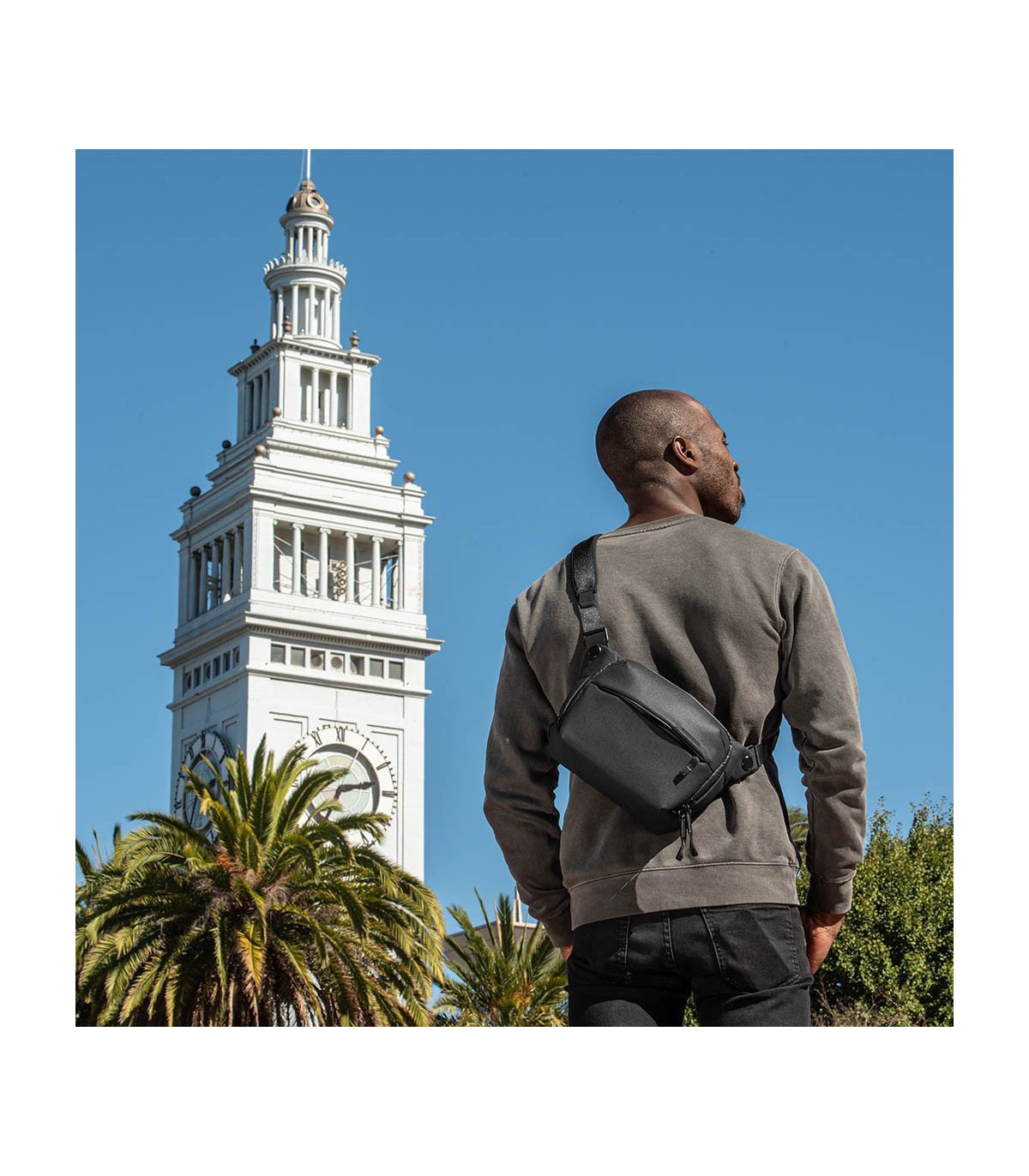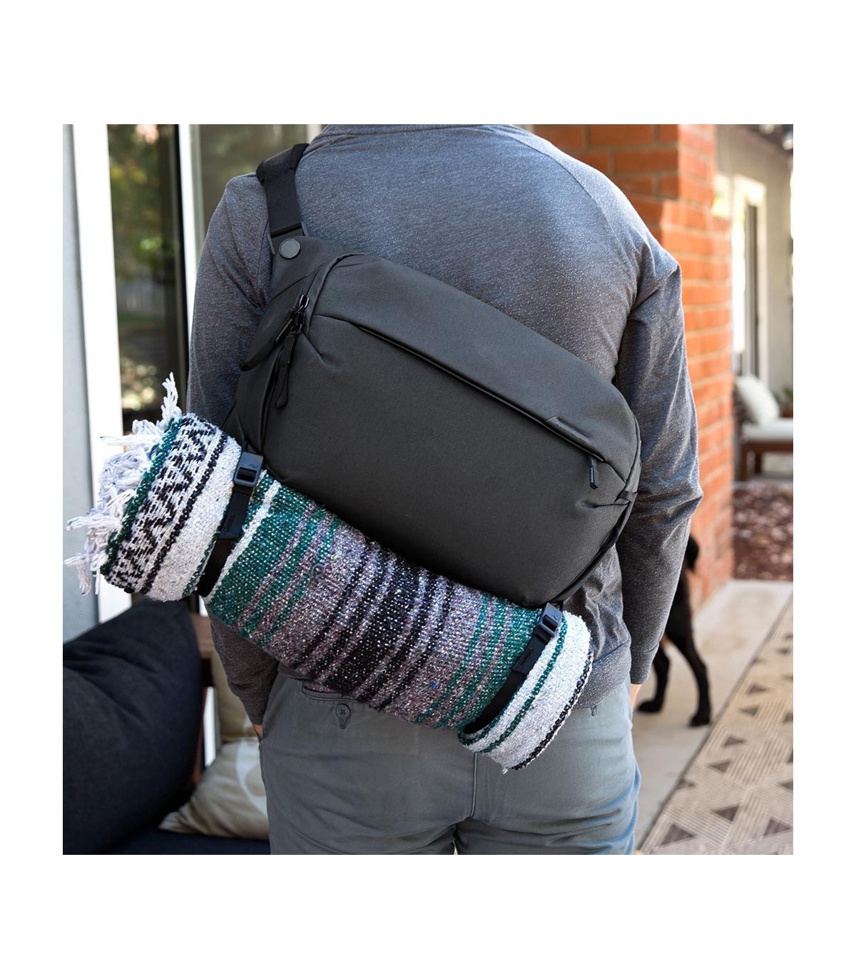 Peak Design Everyday Sling on loodud kohanemisvõimet silmas pidades. Sellel on reguleeritav polsterdatud õlarihm mugavaks käed-vabad kandmiseks, mida saab reguleerida nii vasaku kui ka parema õla jaoks. Lisaks saab turvalisuse ja mugavuse suurendamiseks kanda ümber rinna või vöökoha stabiliseerivat rihma.
