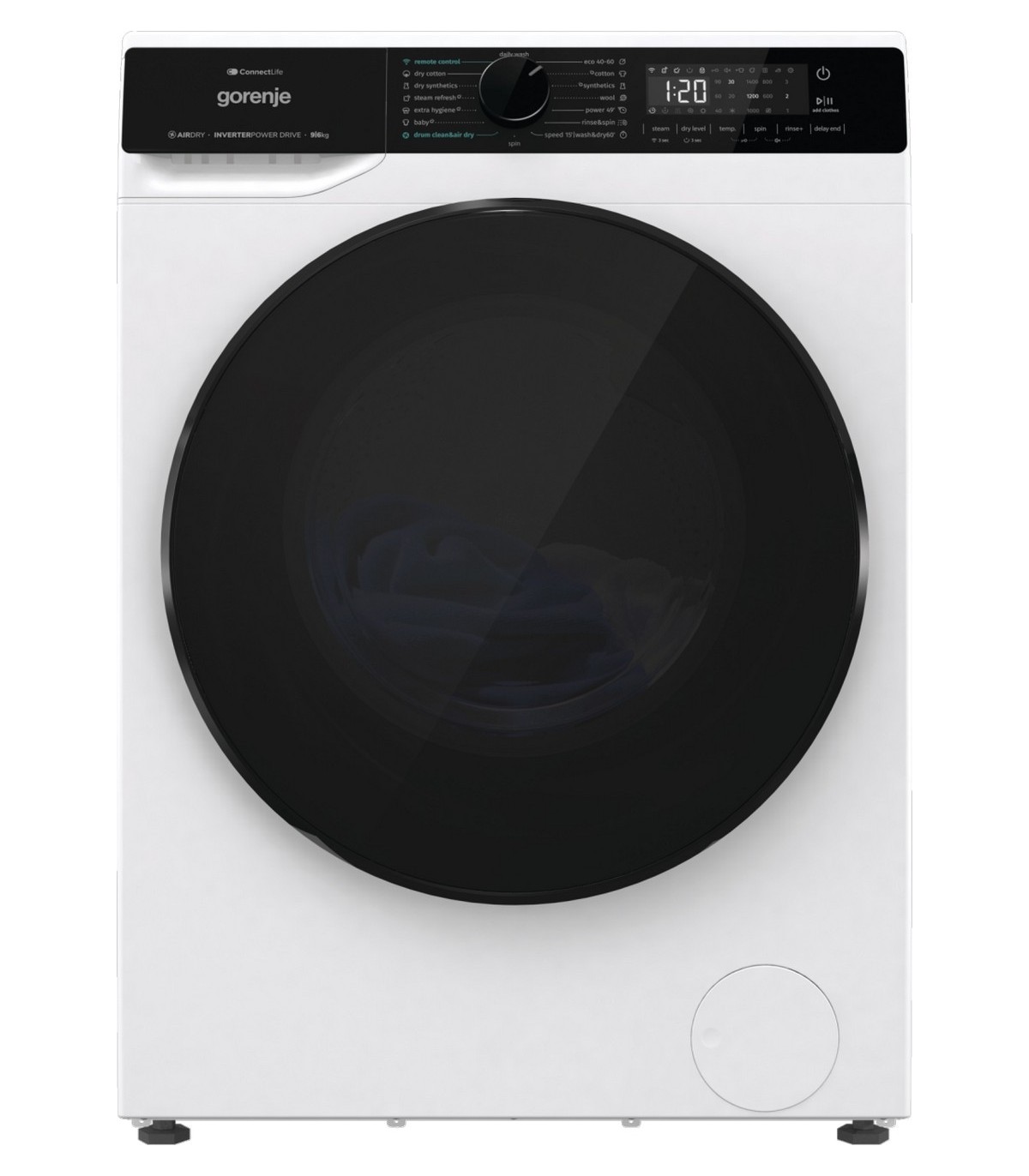 * 9 kg pesu, 6 kg kuivatus, 1400 p/min
