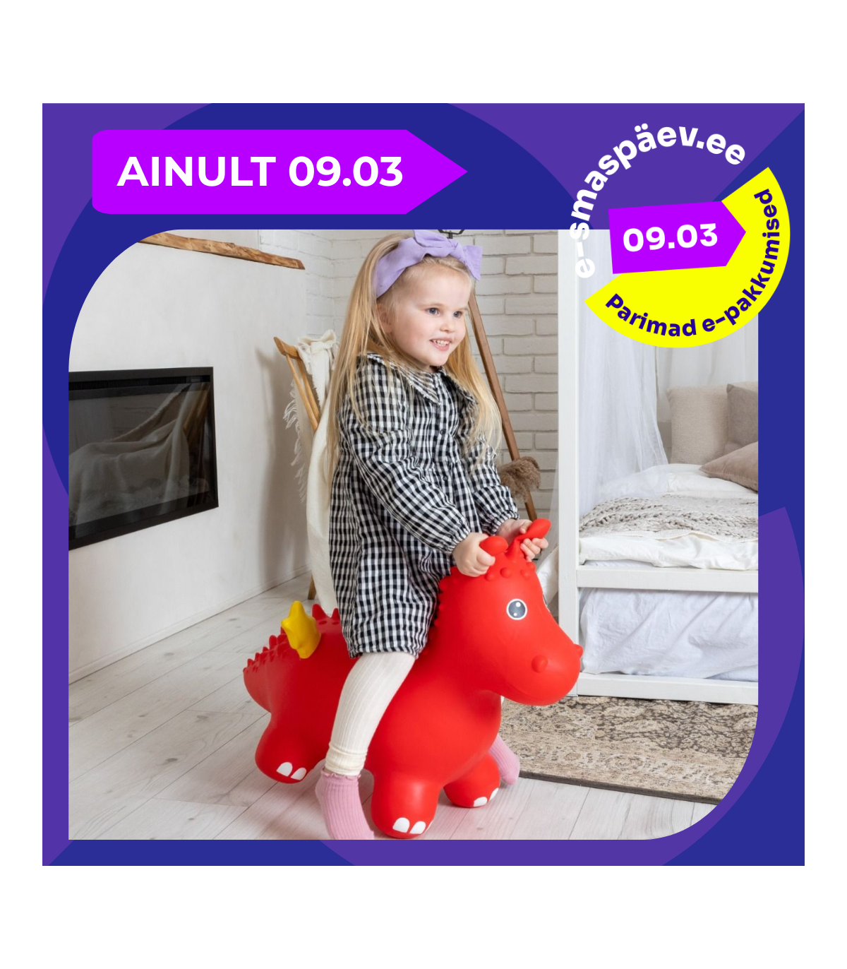 Komplektis on Jumpy hüppeloom, sünnitunnistus ning käsipump, millega saab looma kiirelt ja lihtsalt täis pumbata.
