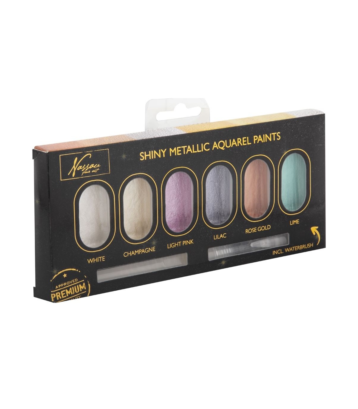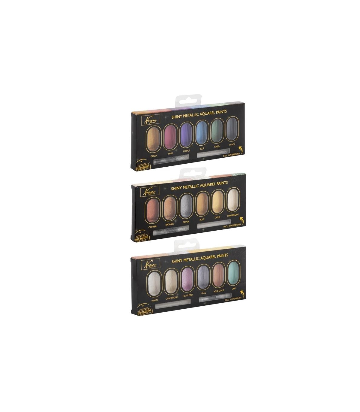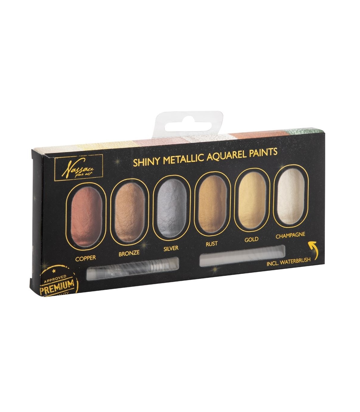Komplekt sisaldab 6 värvi metallist akvarellvärvi ja pintslit.