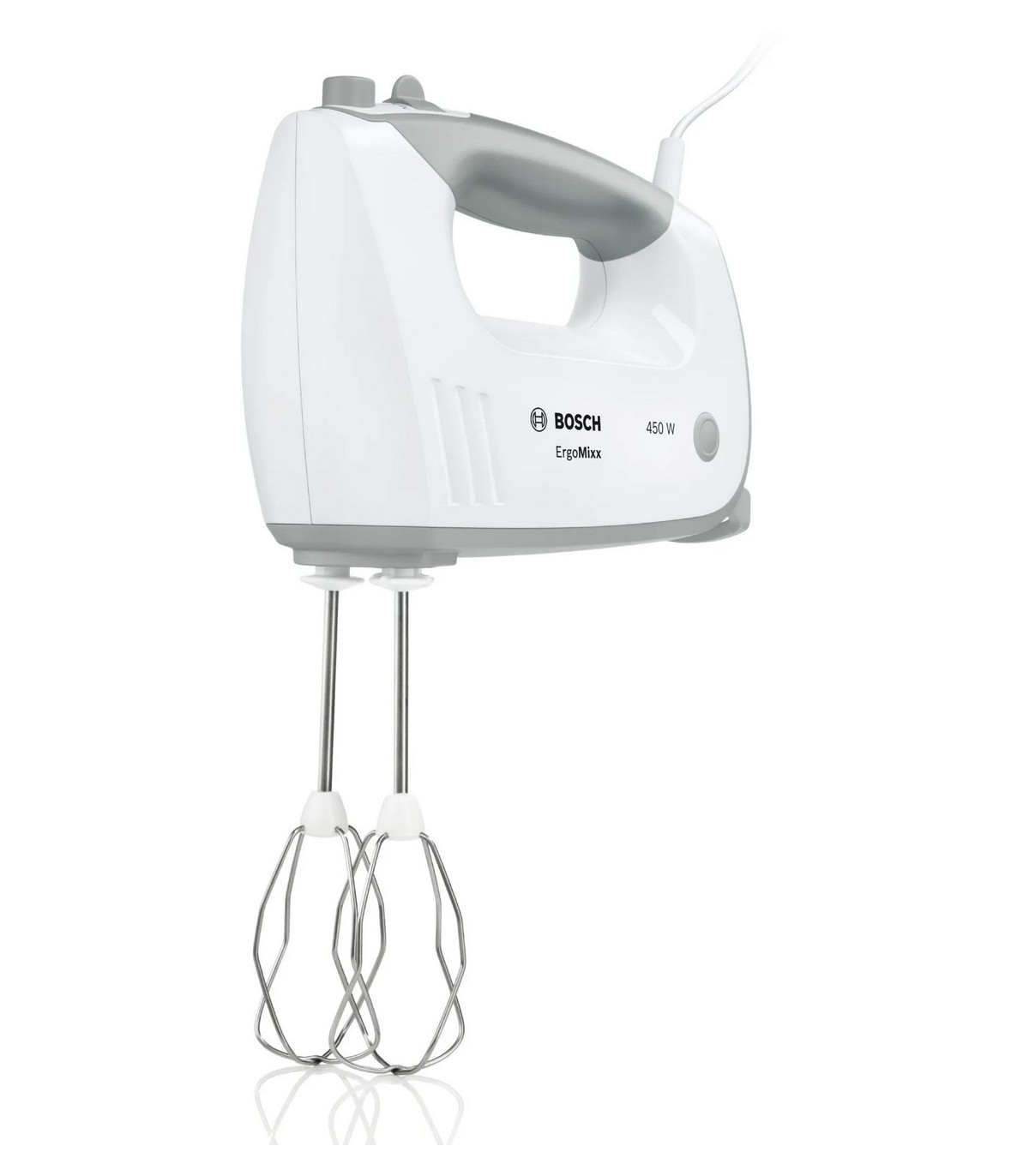 * Ergonoomiline pehme kattega käepide – mugavaks ja ohutuks mikserdamiseks, värv: valge/hall