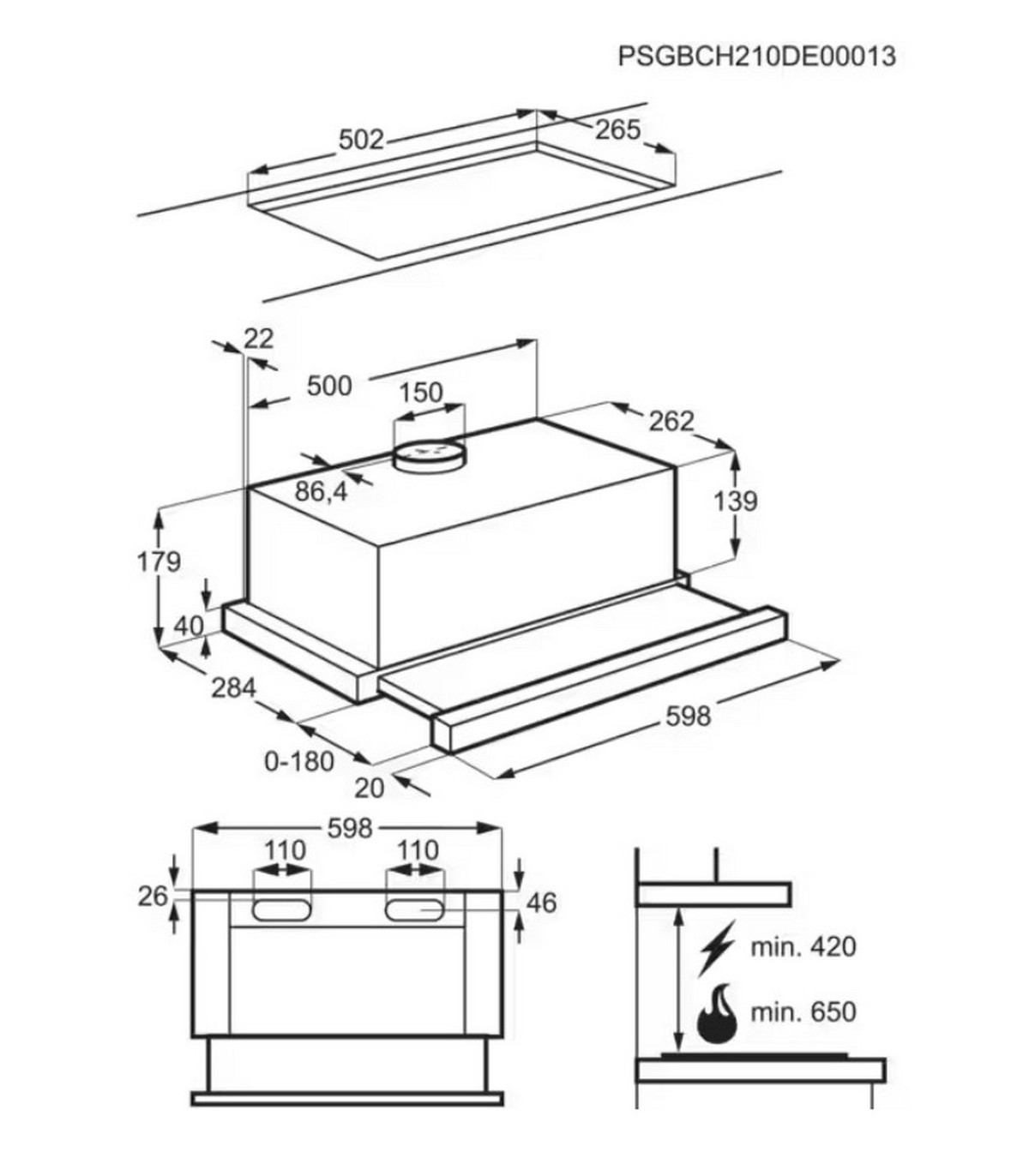 - Exhaust pipe diameter (mm)