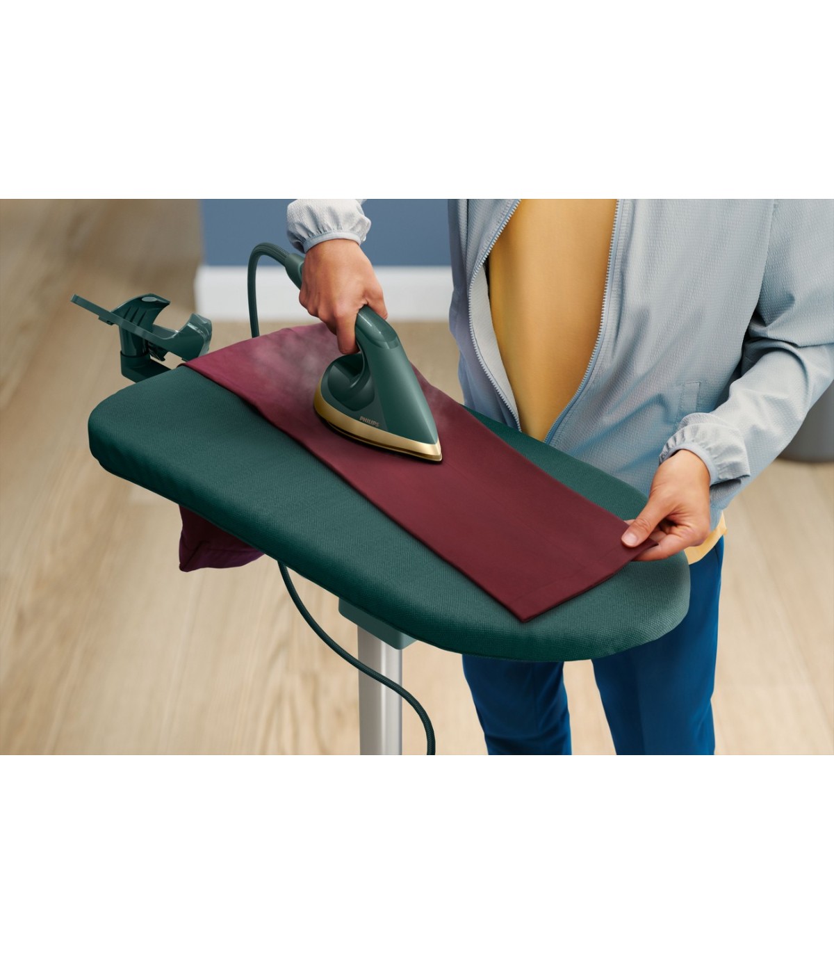 * Võimas ja pidev auruvoog 90g/min, seadistatav triikimislaud, veepaak 1,1l, värvus tumeroheline, juhtme pikkus 1,8 m, vooliku pikkus 1,3 m