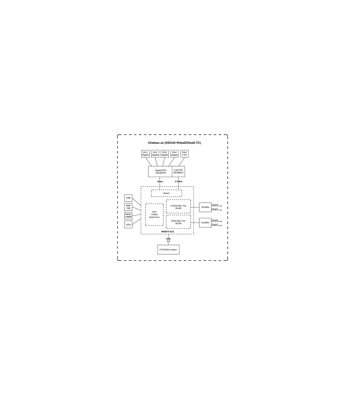 MikroTik Chateau LTE18 ax S53UG+5HaxD2HaxD-TC&EG18-EA 802.11ax, 574 Mbit/s (2.4 GHz) / 1200 Mbit/s (5 GHz) Mbit/s, Ethernet LAN