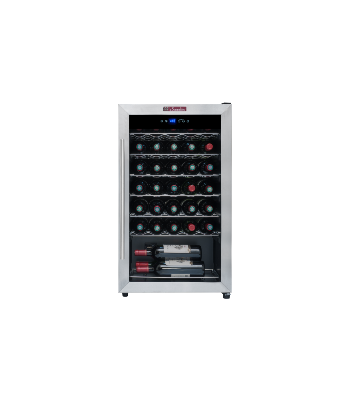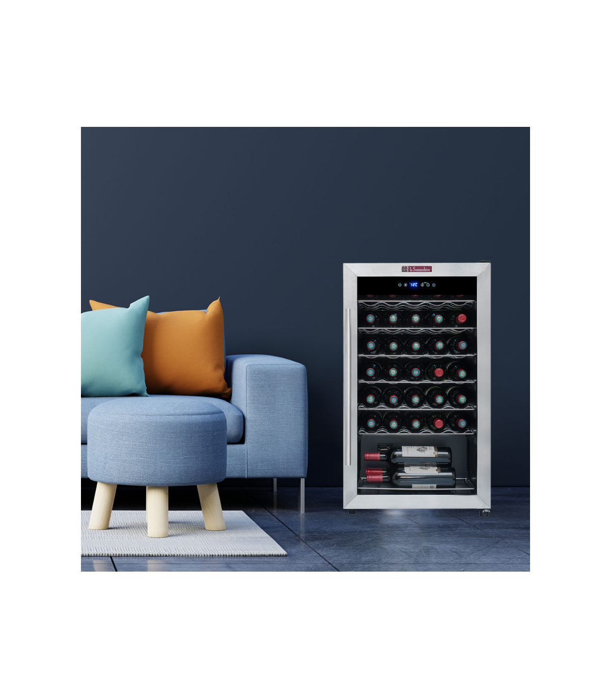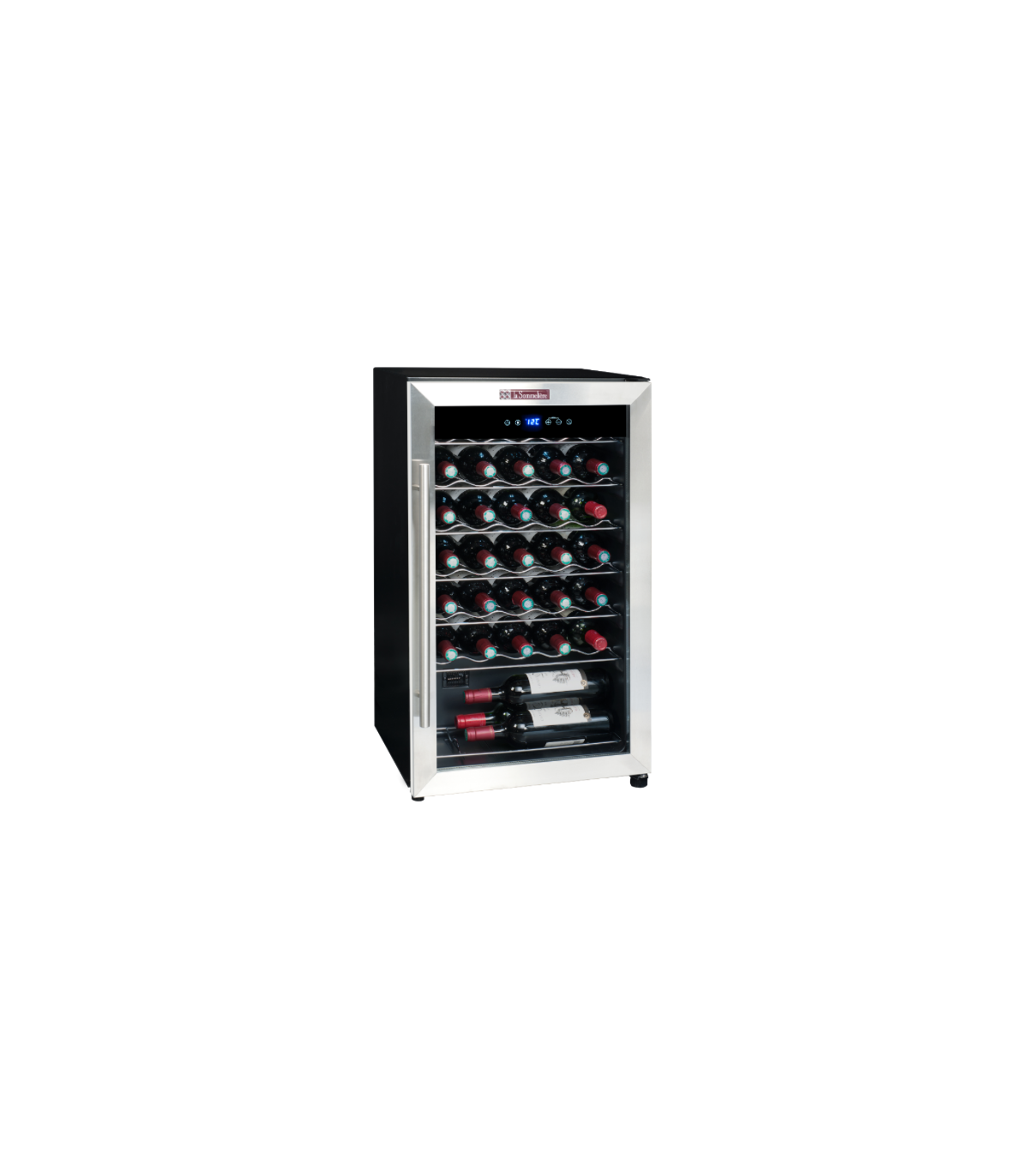 Modern cooler La Sommeliere LS34A protects your wines with its tempered glass door, anti-UV treatment and enhances your bottles with interior LED lighting.