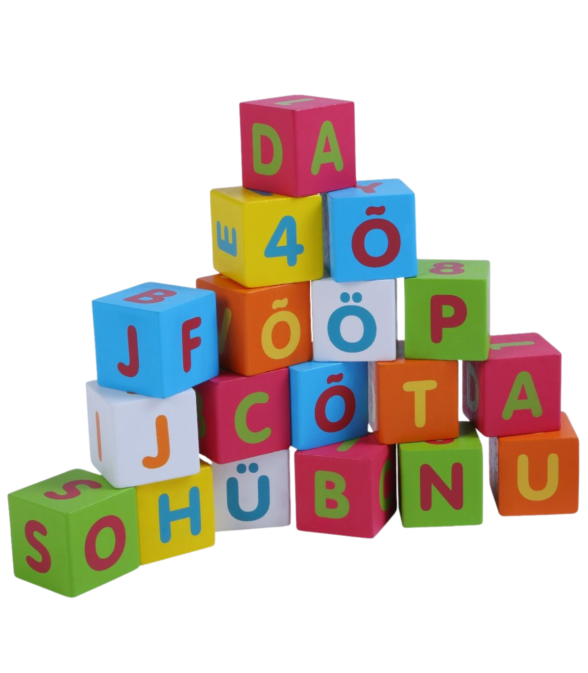 Toredad puidust värvilised klotsid, mille külgedel on eesti tähed ja numbrid. Annab võimaluse tutvustada lapsele erinevaid värve, numbreid ja tähti. Muidugi on lõbus ka lihtsalt torne ehitada! Klotsidega mängimine arendab lapse motoorseid oskusi ning loovust ja loogilist mõtlemist. Komplektis on 26 klotsi. Ühe klotsi mõõdud on 3,5 cm x 3,5 cm x 3,5 cm.