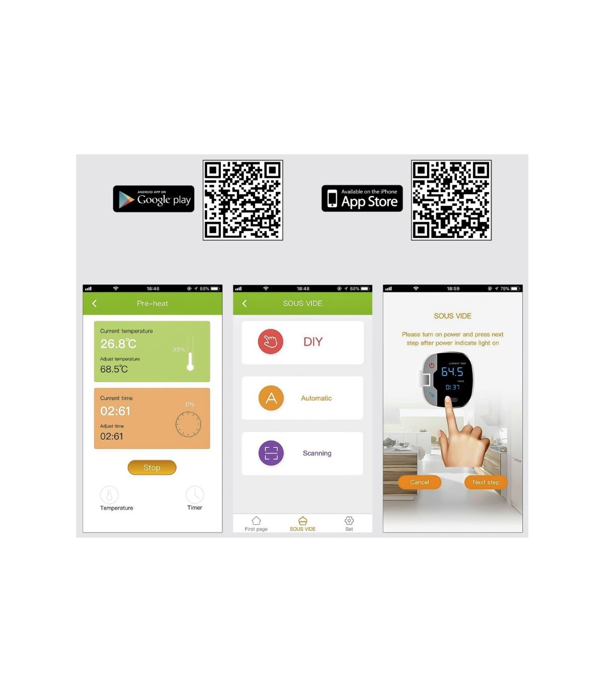 * Puutetundlik paneel. Temperatuur seatav 0 °C kuni 90 °C (0,5 °C sammuga), taimer 99 h