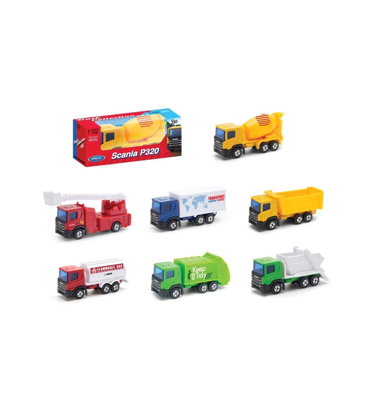 Welly Scania mudelautod, mille valikus on nii veoautosid kui töömasinaid.