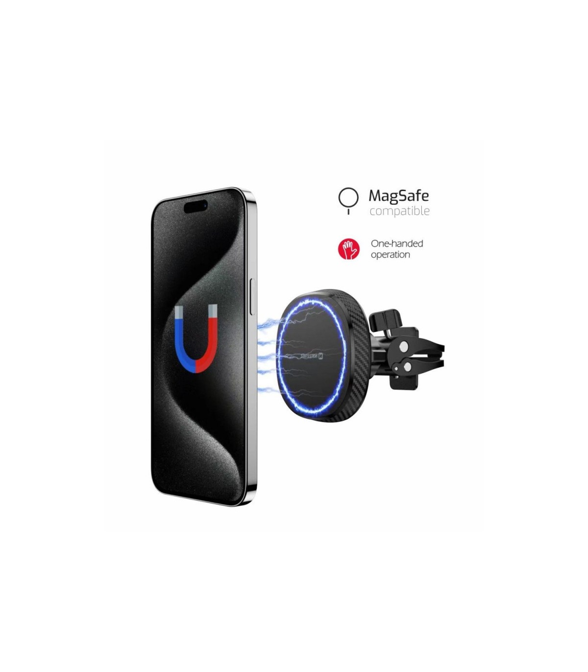 -MagSafe ühilduv(alates iPhone 12), teistele telefonidele komplektis telefonile või ümbrisele kleebitav metallrõngas