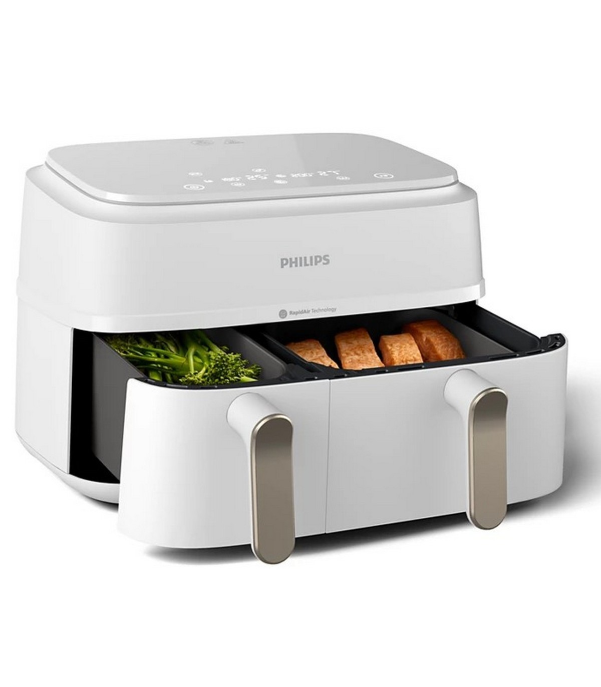 - Kaks sahtlit ja kaks suurust mis tahes toidu valmistamiseks. Puuteekraanil on 8 eelseadistusfunktsiooni. Rapid Airi+ tehnoloogia.