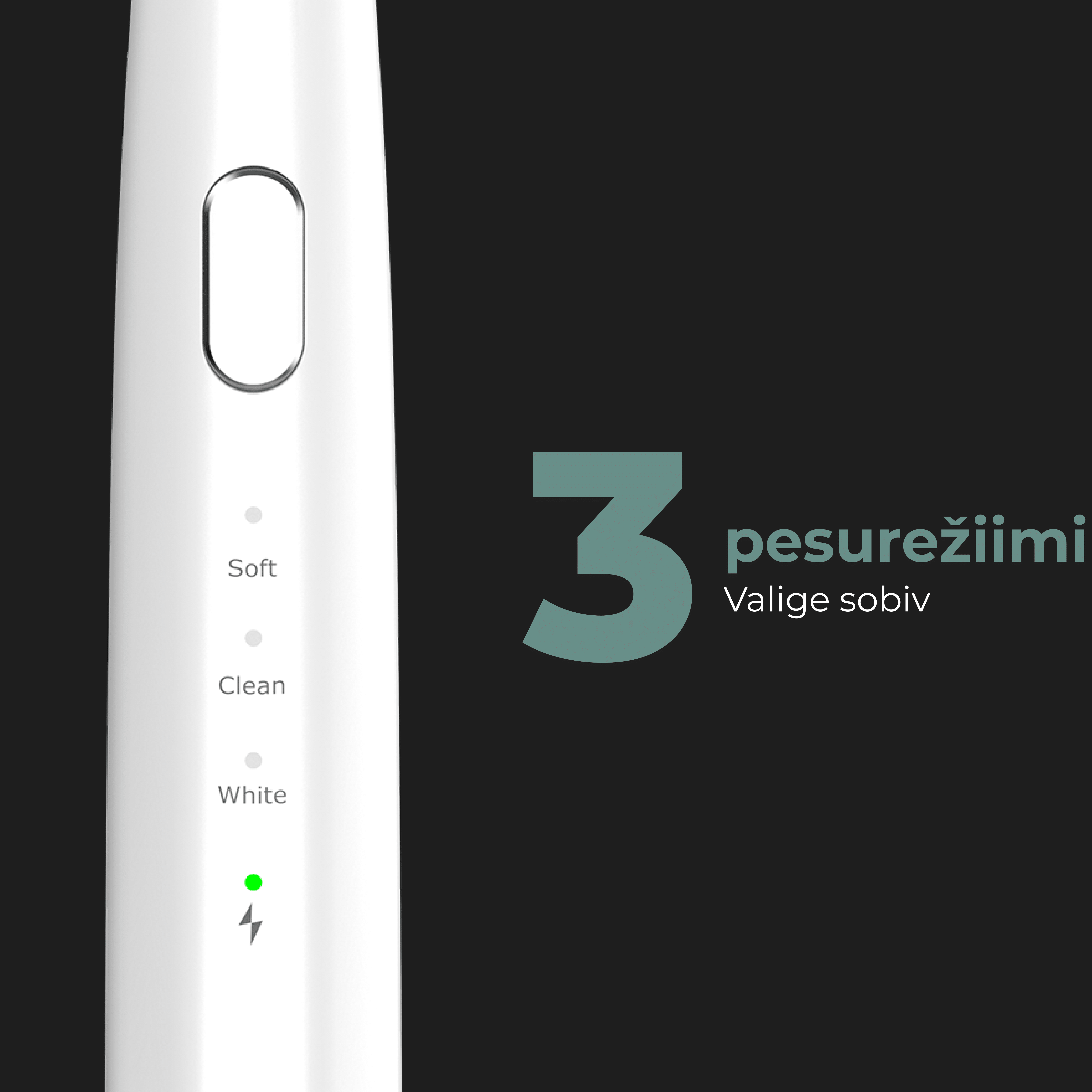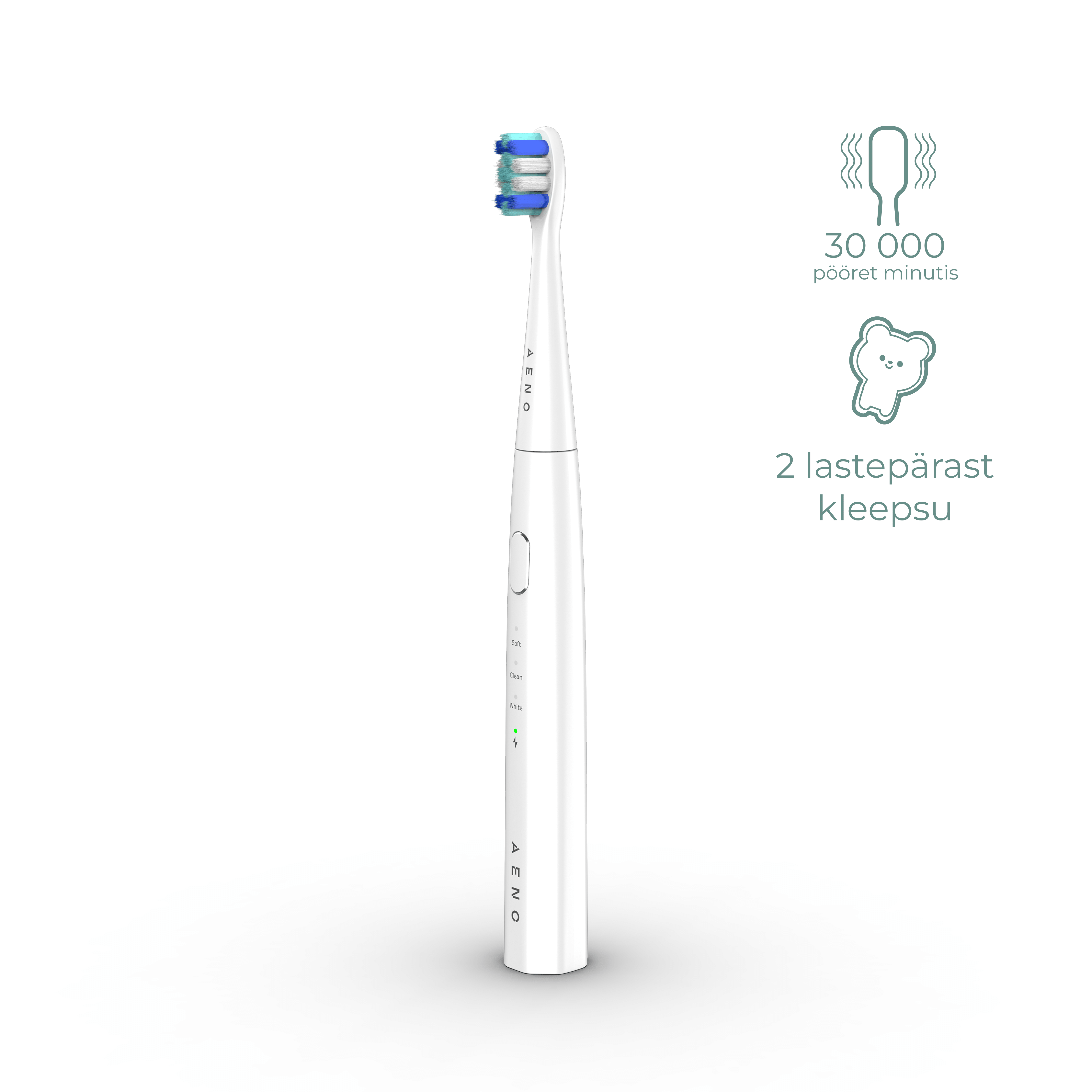 * Kolm töörežiimi ( soft, clean, white) 30 sekundi taimerid