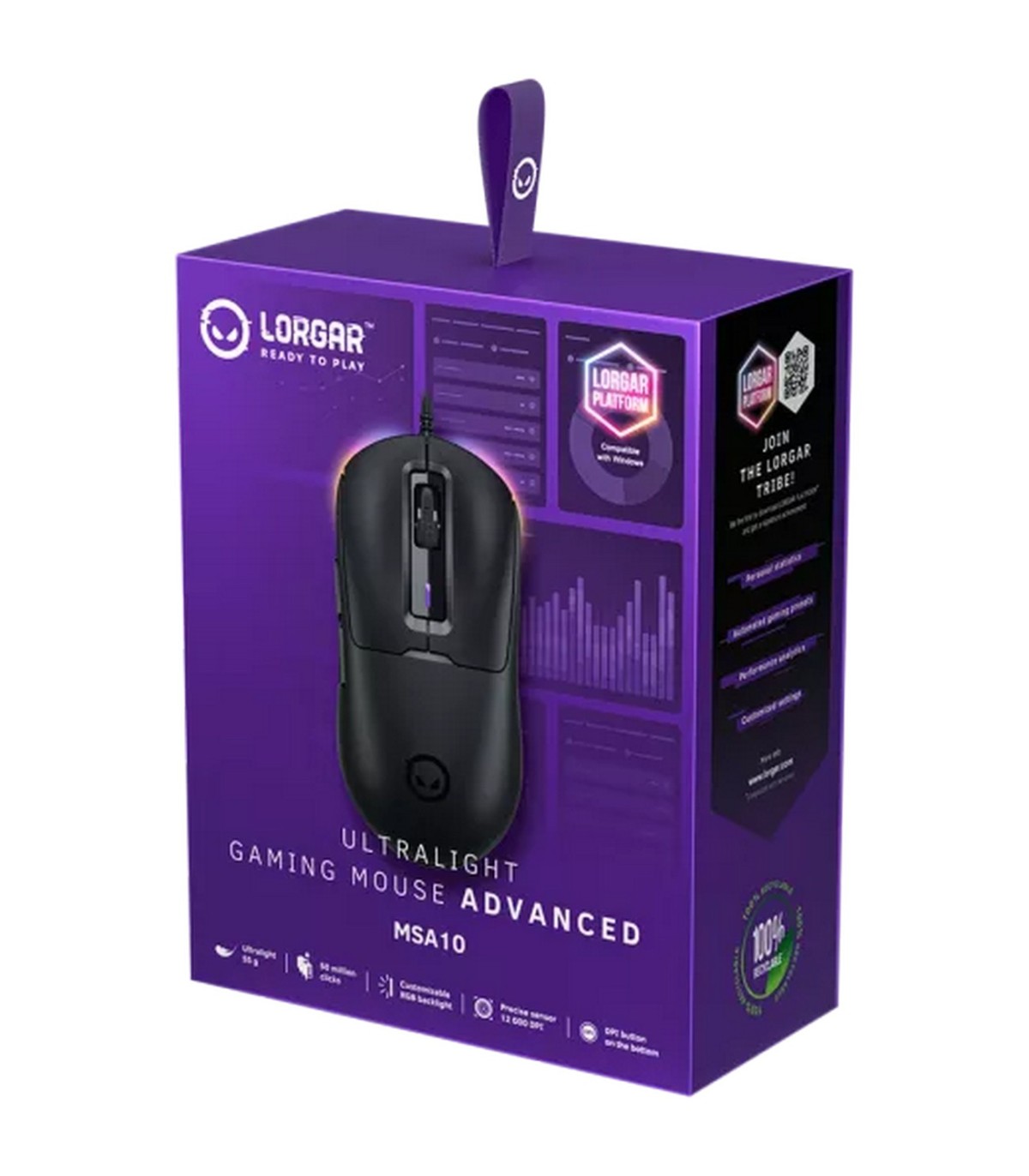 *Ergonoomiline mängurihiir RGB valgustusega, täielikult muudetav läbi Lorgar Platform tarkvara