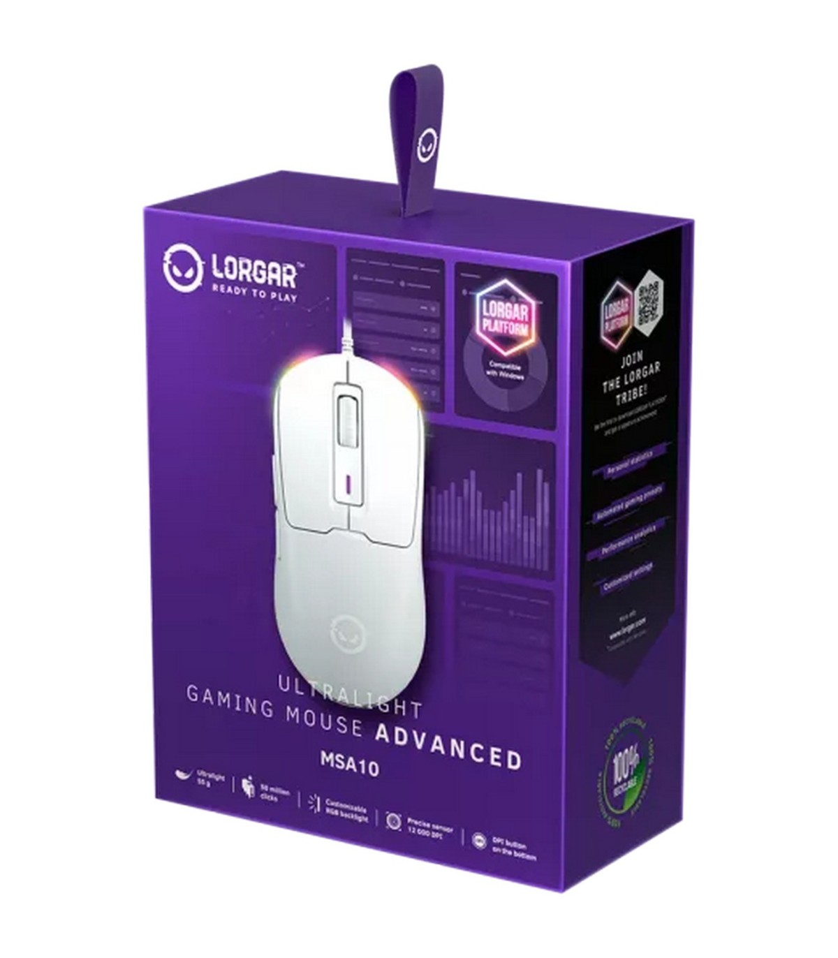 *Ergonoomiline mängurihiir RGB valgustusega, täielikult muudetav läbi Lorgar Platform tarkvara