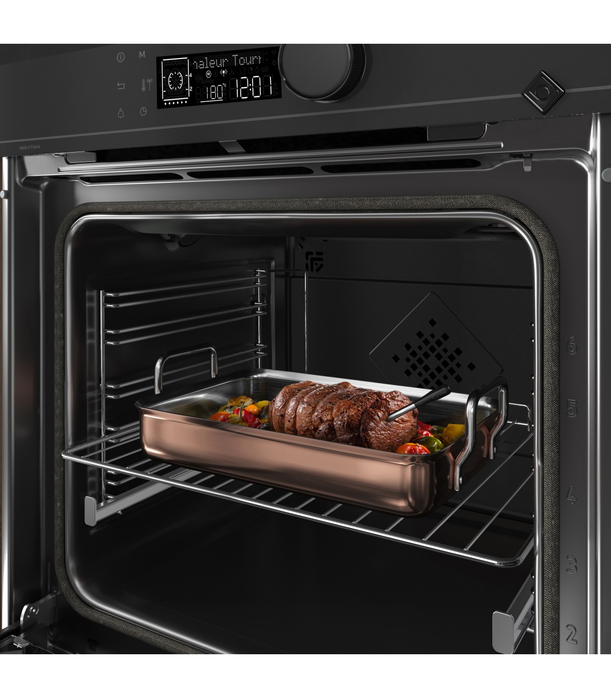 Jahe pehmelt sulguv uks tagab muretu ahju käsitluse! 4-kordse tugevdatud klaasiga uks püsib jahe ka kõige kõrgemate temperatuuride juures, isegi pürolüüspuhastuse vältel. Pehmelt sulguvad uksehinged tagavad, et uks sulgub alati vaikselt.