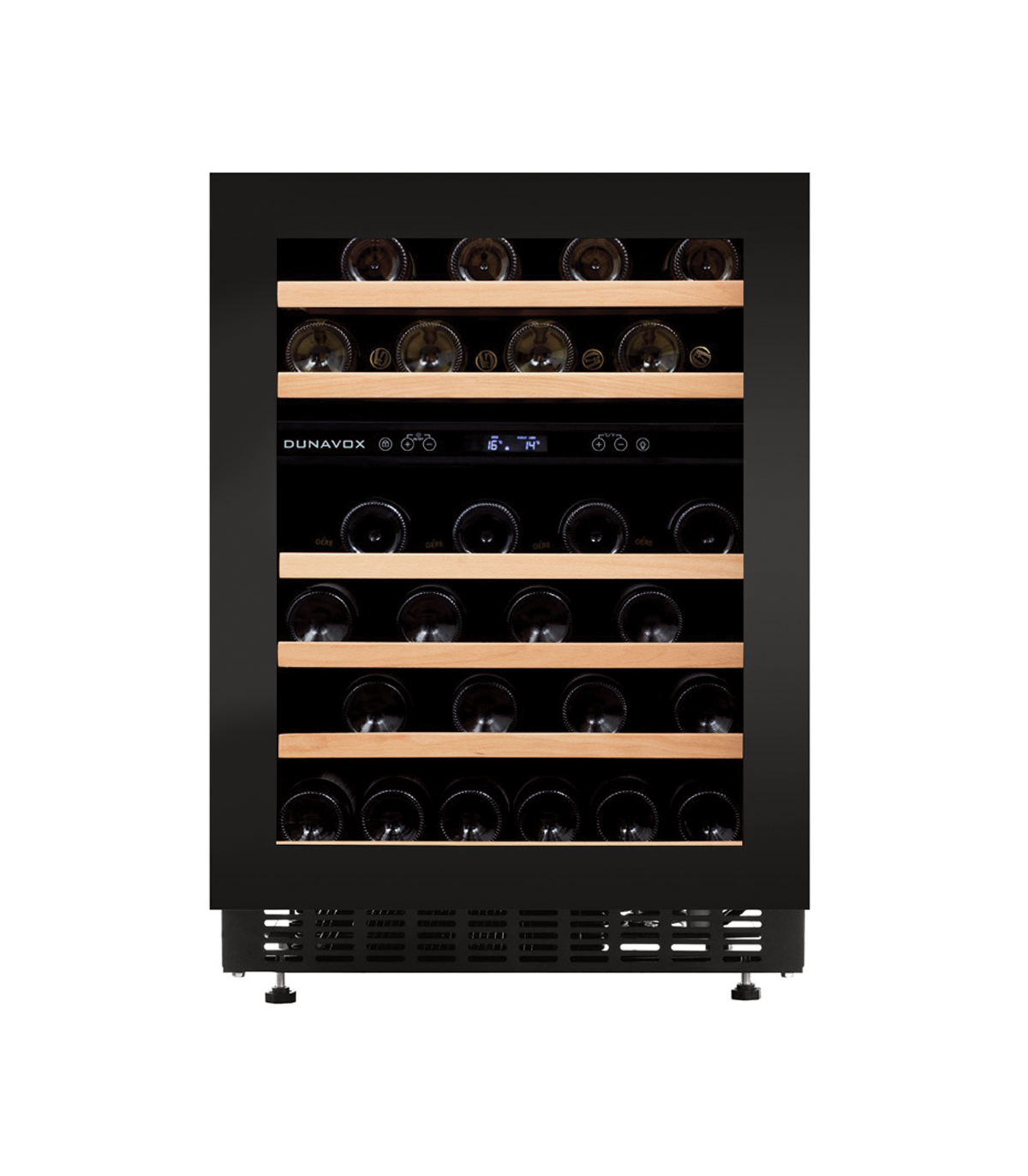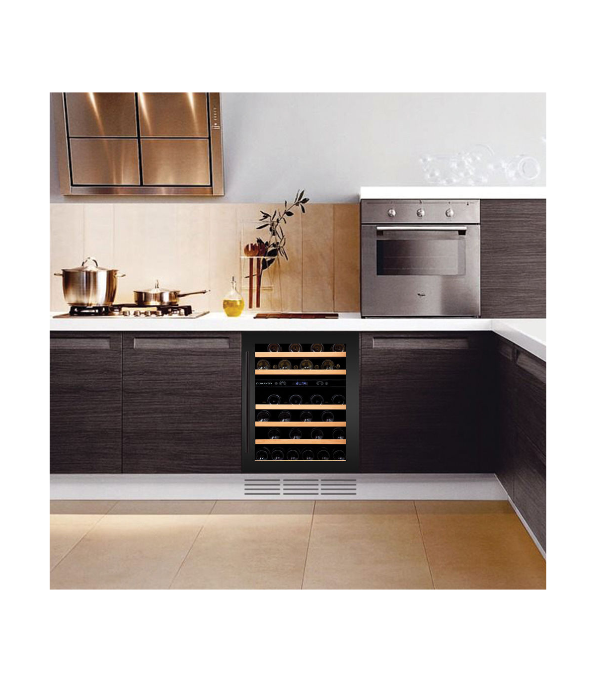 Elegantne süvistatud käepidemega kahe tsooniga 60 cm laiune tööpinna alune veinikülmik Dunavoxilt.