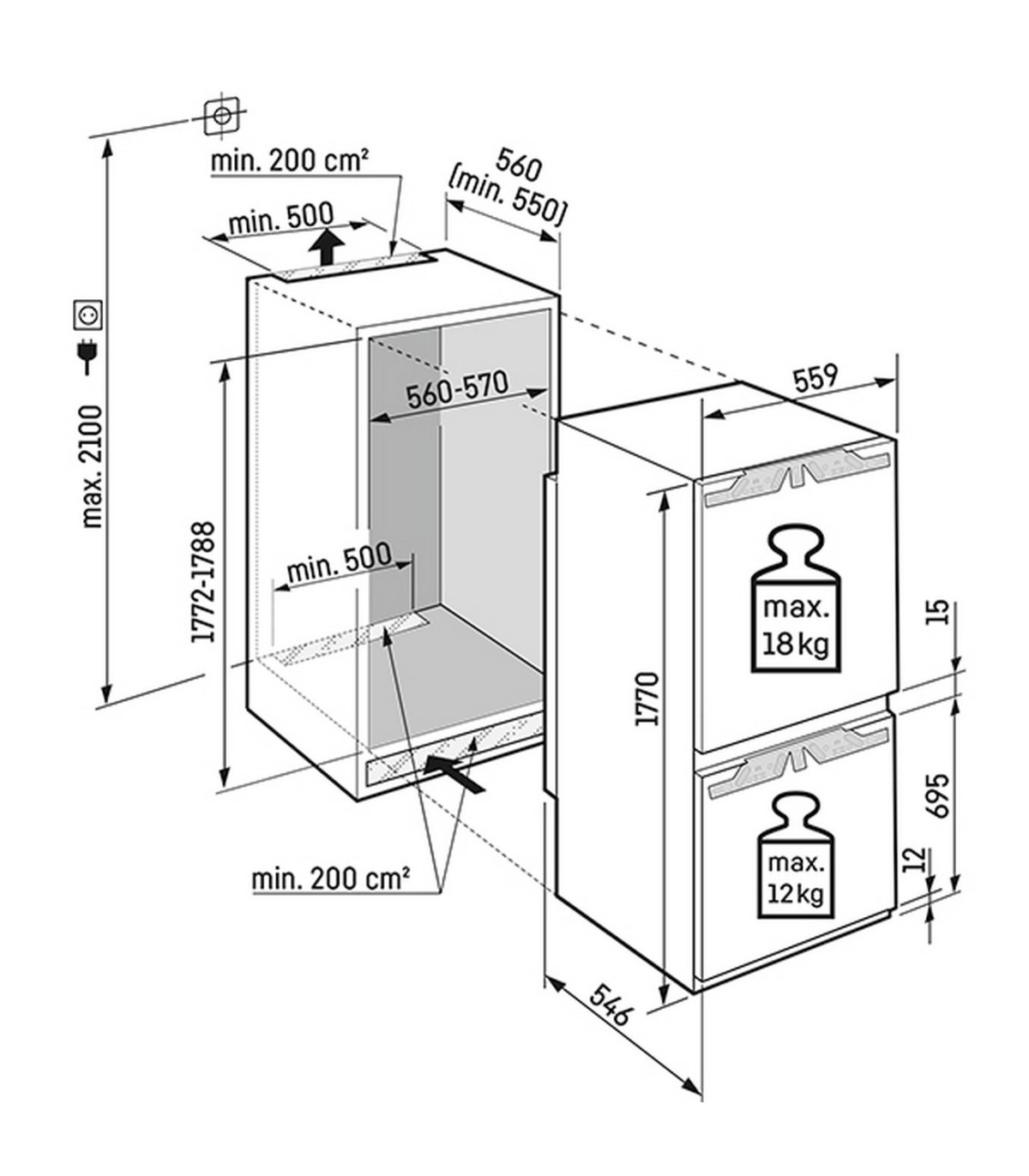 - Sügavkülmkambri maht, neto (l)
