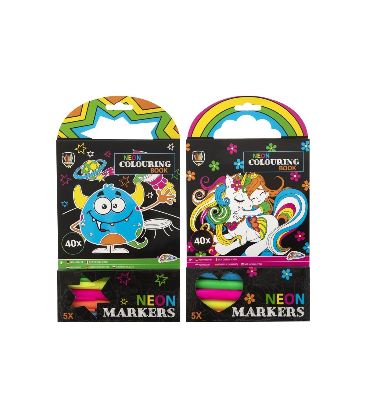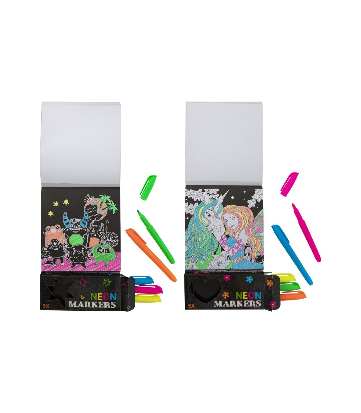 Komplektis on 40 leheküljeline piltidega raamat ning 5 neoonvärvides markerit.