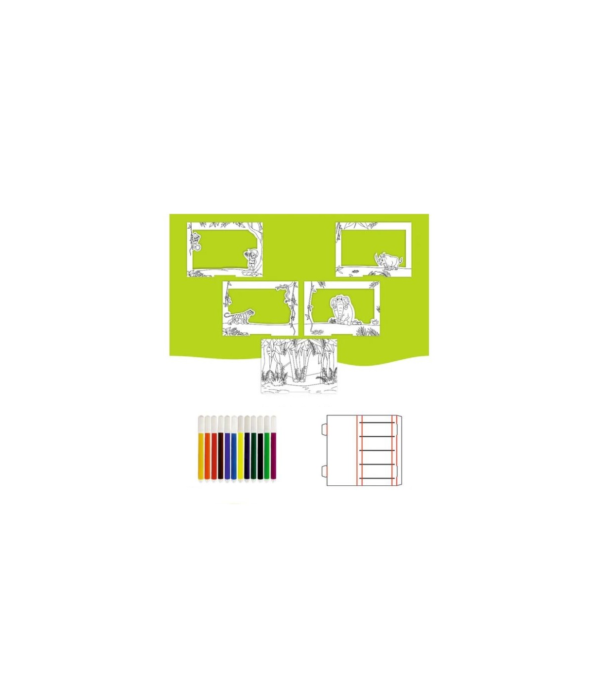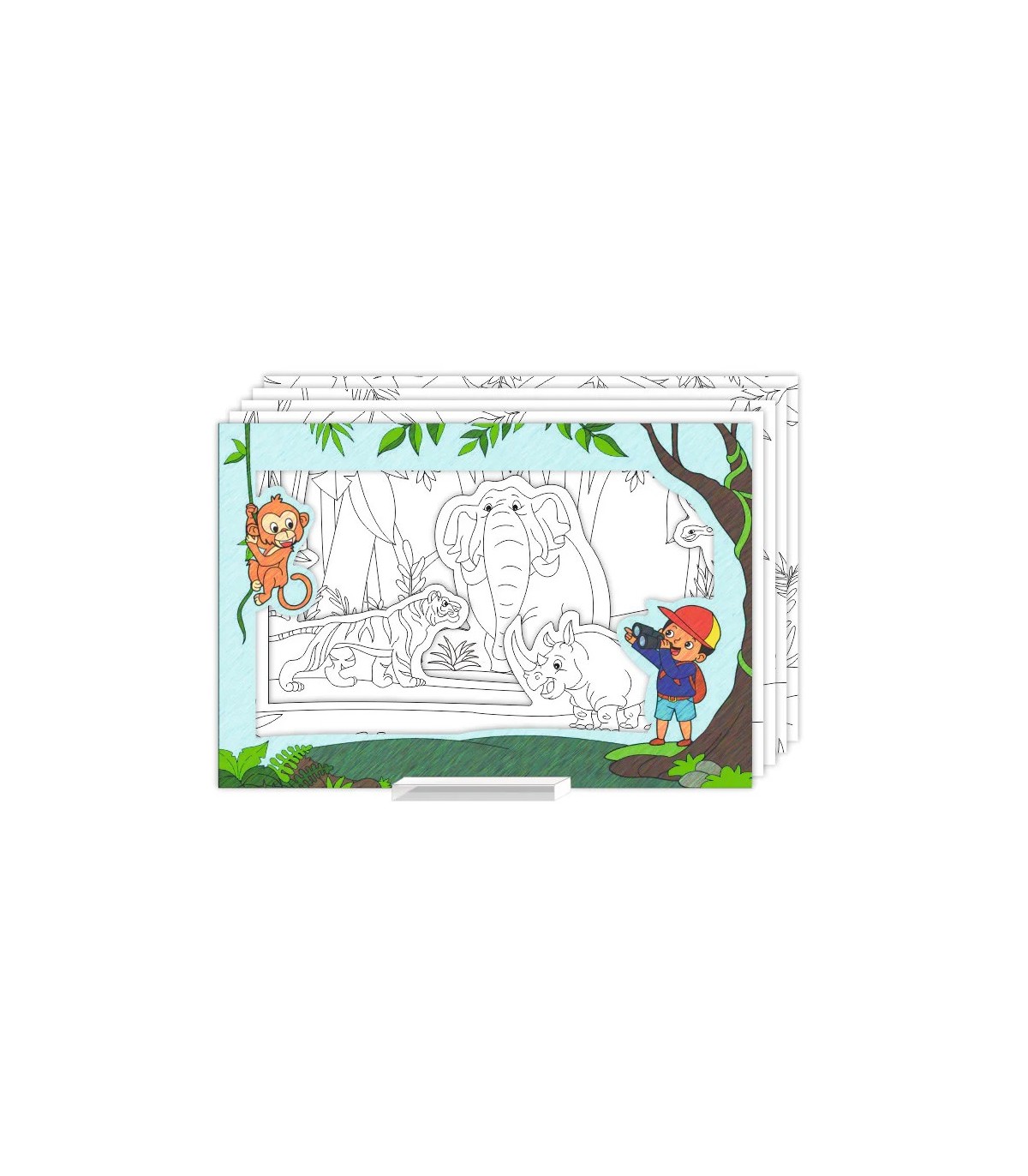 Värvi iga lahtilõigatud leht eraldi, pane kõik viis lehte kokkuvolditavale aluse ja vaata kuidas kihid 3D efektiga ellu ärkavad, luues seiklusliku džungli maailma!