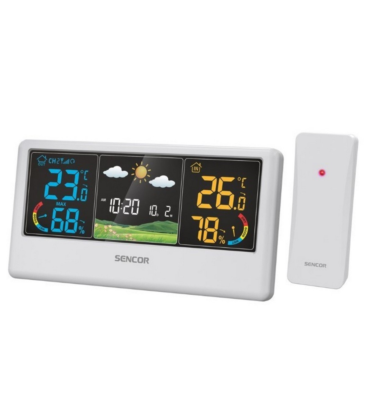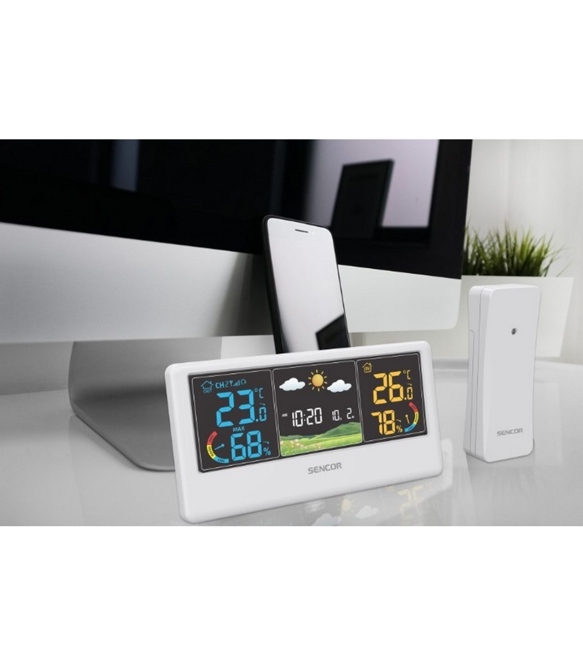 * Värvilise LCD-ekraaniga töölauale paigutatav või seinale kinnitatav ilmajaam, korpuse värv valge