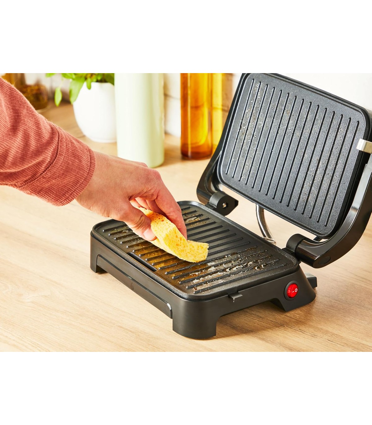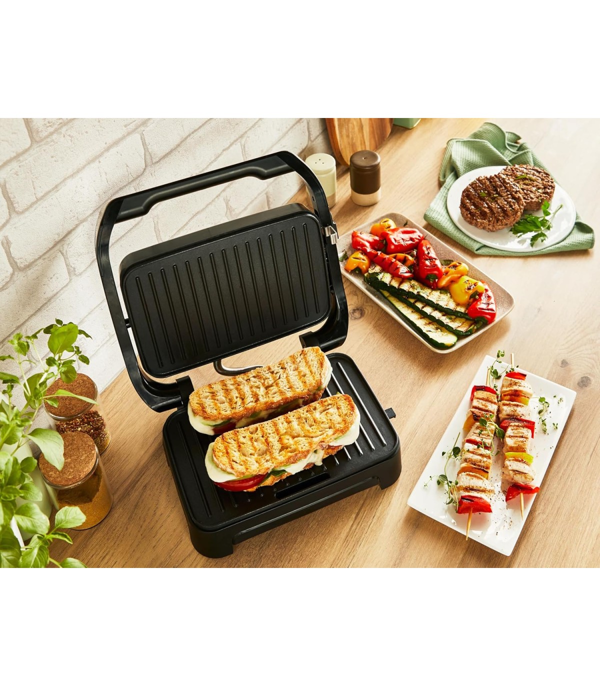 * Paninimasina ja grilli kombinatsioon, millel on suur käepide paninide pressimiseks ning liha ja köögiviljade grillimiseks - mitmekülgsete ja lihtsate toitude valmistamiseks
