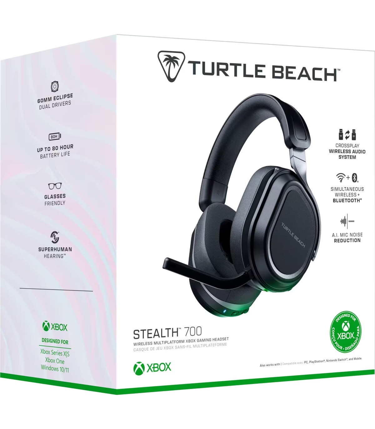 Loodud Xboxi jaoks, ühildub ka teistega. Turtle Beach® Stealth™ 700 Gen 3 kõrvaklapid ületavad mänguplatvormide vahelisi piire. Naudi võrreldamatut heli- ja mikrofoni kvaliteeti nii Xbox®, PlayStation®, PC, Steam Deck™ ja isegi mobiiltelefonidega.