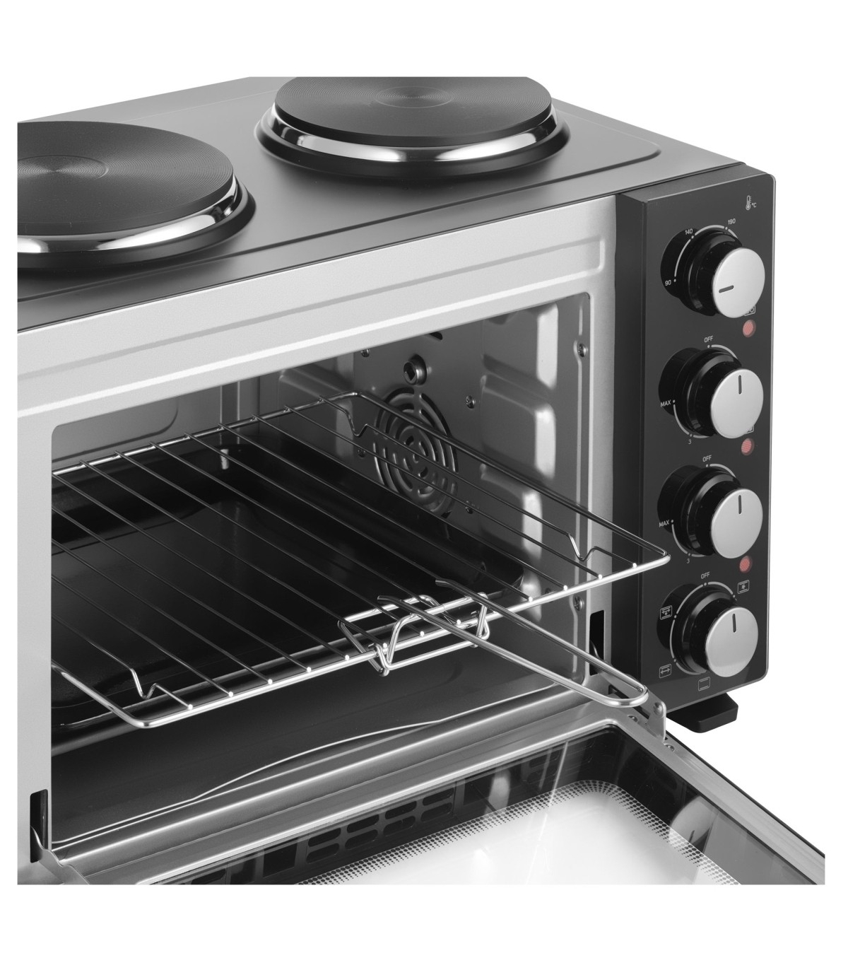 * 2 x malmist keedutsooni ( 15,5 ja 18,5 cm, 700/1000 W), mini ahi, värv must