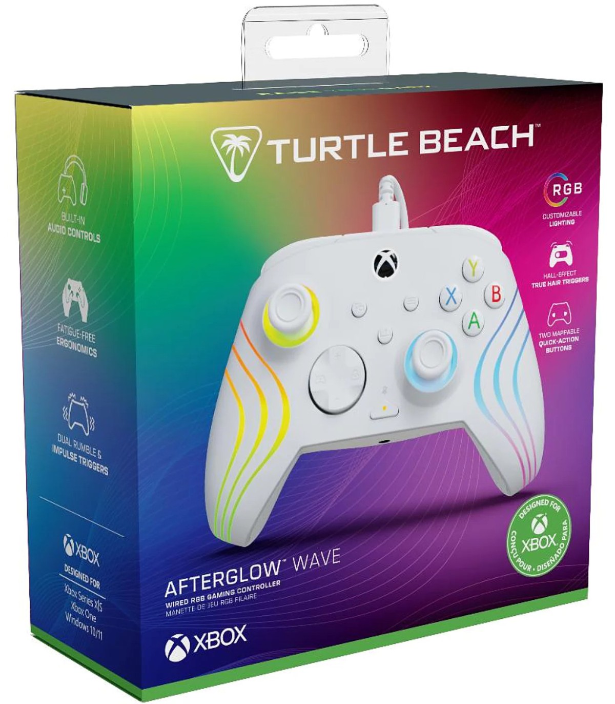 Afterglow Wave mängupult on ametlikult litsentseeritud kasutamiseks Xbox Series X, Xbox Series S, Xbox One ja Windows 10 & 11 arvutitega. Pult saab ühenduse töökindla 3-meetrise USB-C juhtmega.