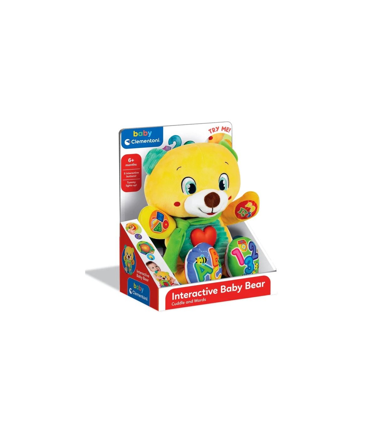 Viie interaktiivse nupu vajutamine paneb mänguasja rääkima ja tutvustab lastele nende esimesi tähti, numbreid, kujundeid ja värve.