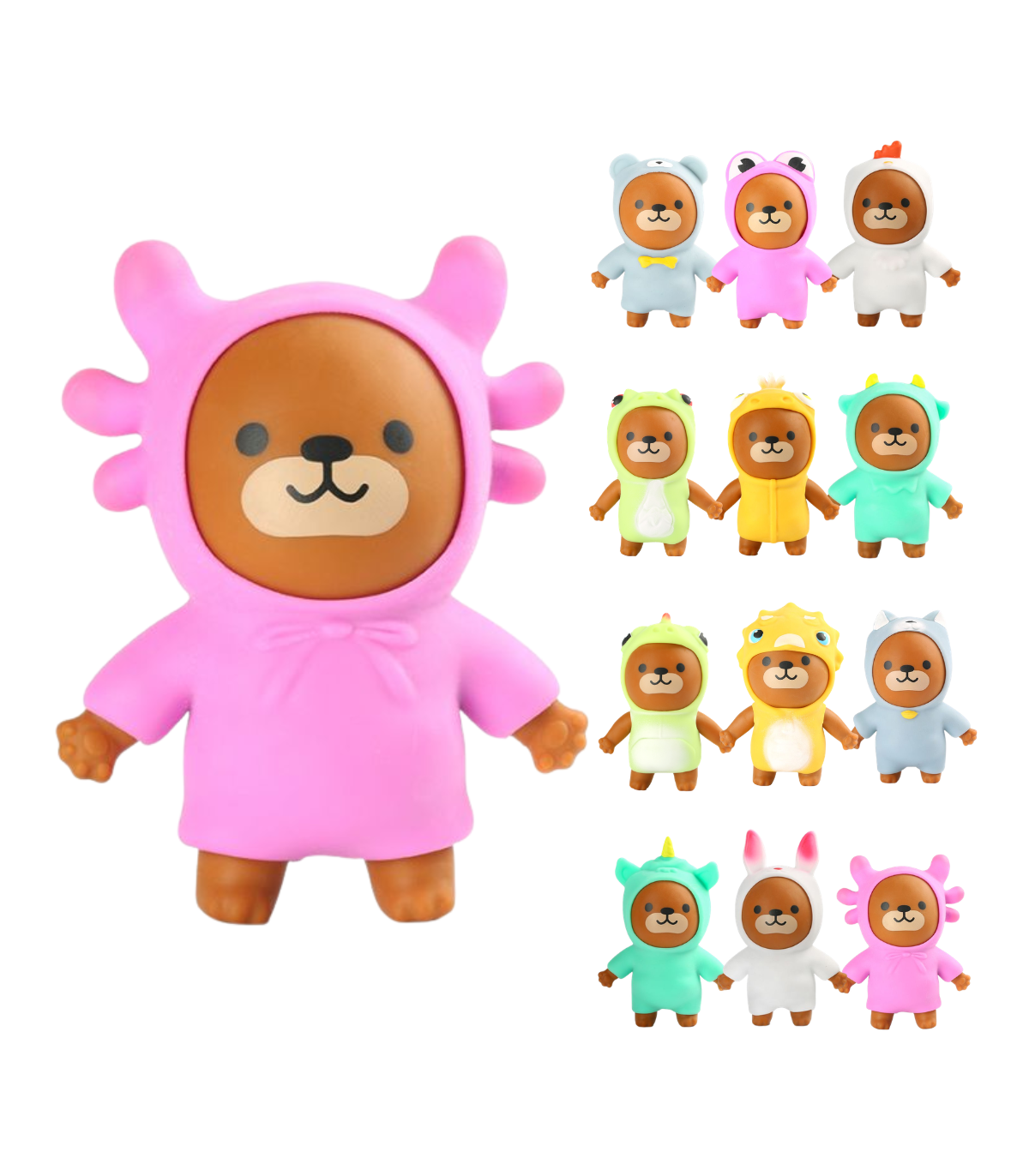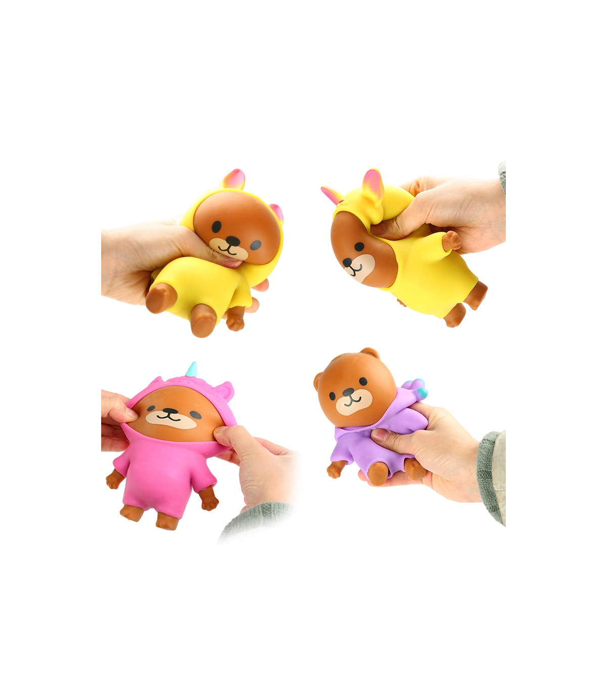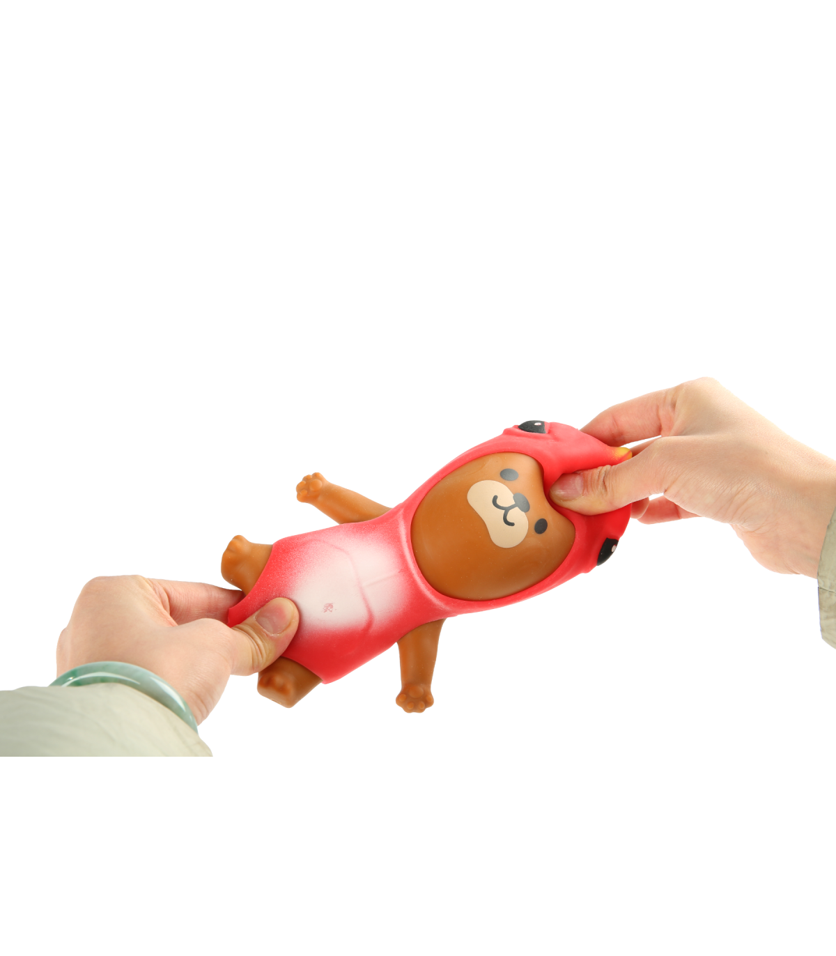 Mudimismänguasi karu, mida saab venitada, pigistada ja kostüümi eemaldada.
