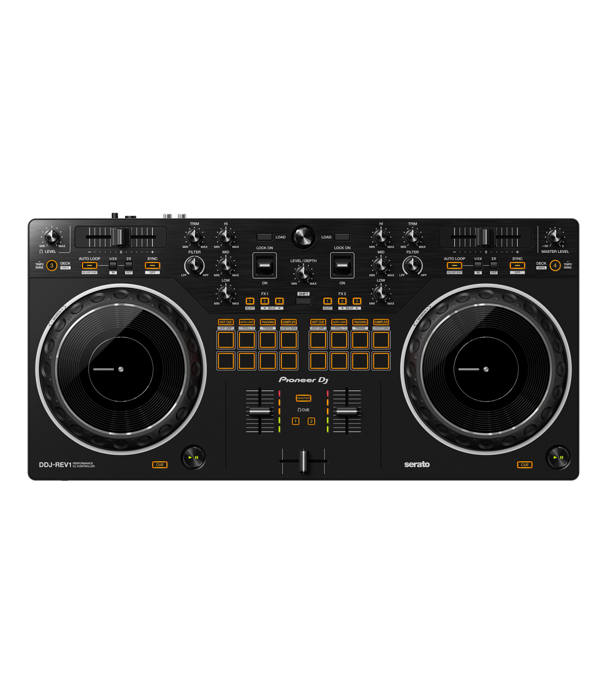 Võta kätte kasutajaliides, mis on loodud emuleerima 2 x PLX-plaadimängijat ja DJM-S-seeria mikserit - sellist seadistust kasutavad pro-batle DJ-d. Tänu DDJ-REV1 uue paigutusega kontrolleritele on palju ruumi miksimise ja scratchimise tehnikate teostamiseks. Tempo liugurid on 60mm - pikemad kui DDJ-SB3-l, et anda teile peenemat kontrolli - ja need kulgevad horisontaalselt tekkide kohal, samas kui Performance Pads on viidud mikseri sektsiooni, et saaksite intuitiivselt kombineerida efekte, käivitada proove ja scratchida oma lugusid.