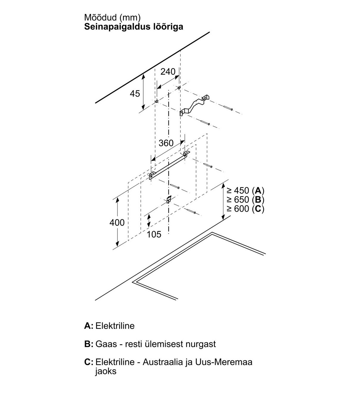 - Ühendus pliidiplaadi ja õhupuhasti vahel