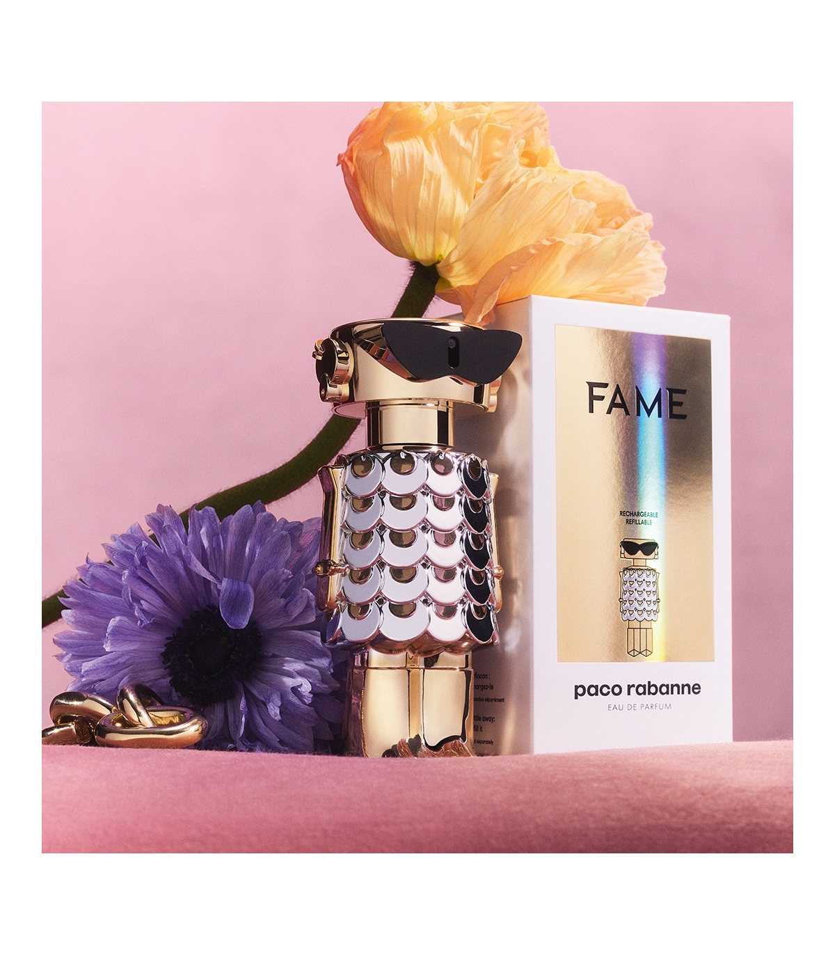 Paco Rabanne’i ihaldusväärne uus naiselik parfüüm FAME on avangardse luksulikkuse kvintessents. Superuuenduslik kompositsioon, millest purskub kallihinnalisi koostisosi, ja muidugi tõeliselt vastupandamatu aroom, millest kiirgab rõõmu ja hulljulget sensuaalsust. FAME’i lõhna iseloomustavad staarkomponendid, mida pole kunagi koos ühes lõhnas kohatud. Lopsakas ja mahlakas mango. Õrn, õhuline ja eriliselt puhas jasmiin. Sõltuvust tekitav, sensuaalne ja kreemjas viiruk. Tulemuseks on läbimurdeline kompositsioon – esimene naiselik kreemjas lõhn parfümeeriamaailmas. Lõhn, mis on sama mitmetahuline ja kaasakiskuv kui Paco Rabanne’i naised minevikus, olevikus ja tulevikus.