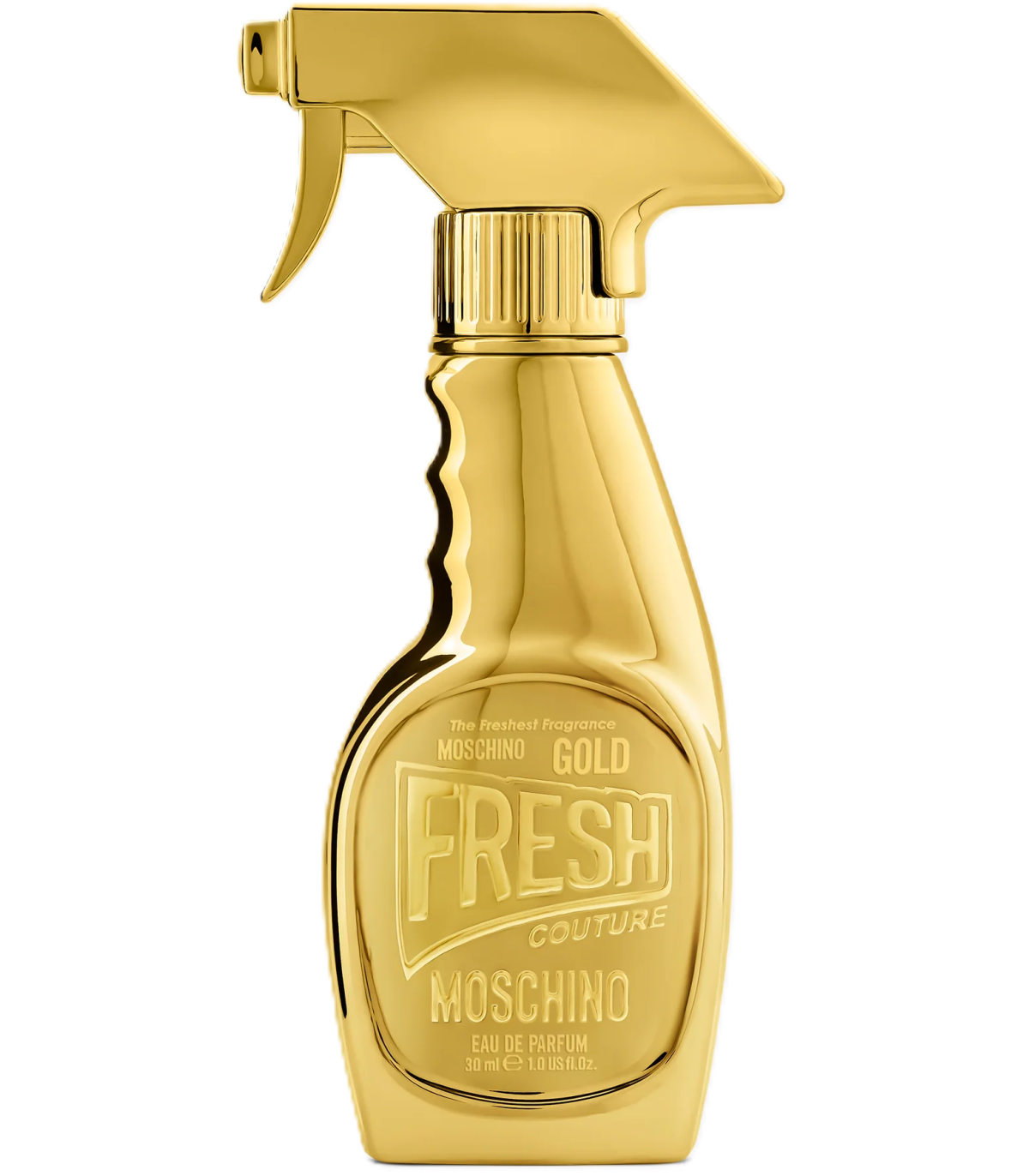 2017 aastal loodud Gold Fresh Couture ühendab igapäevase mängulisuse julge elegantsiga. Moschino ikooniline puhastusspreid meenutav pudel on seekord kaetud särava kullatooniga - lõhn, mis kehastab stiilset paradoksi: mänguline, kuid väärikas; värske, kuid särav. See on austusavaldus enesekindlale ja moeteadlikule hoiakule. Üllatav segu värskusest ja sarmist. Põhinoodid: pirn, rabarber, valge virsik, jasmiin, orhidee, sandlipuu, vanill, muskus.