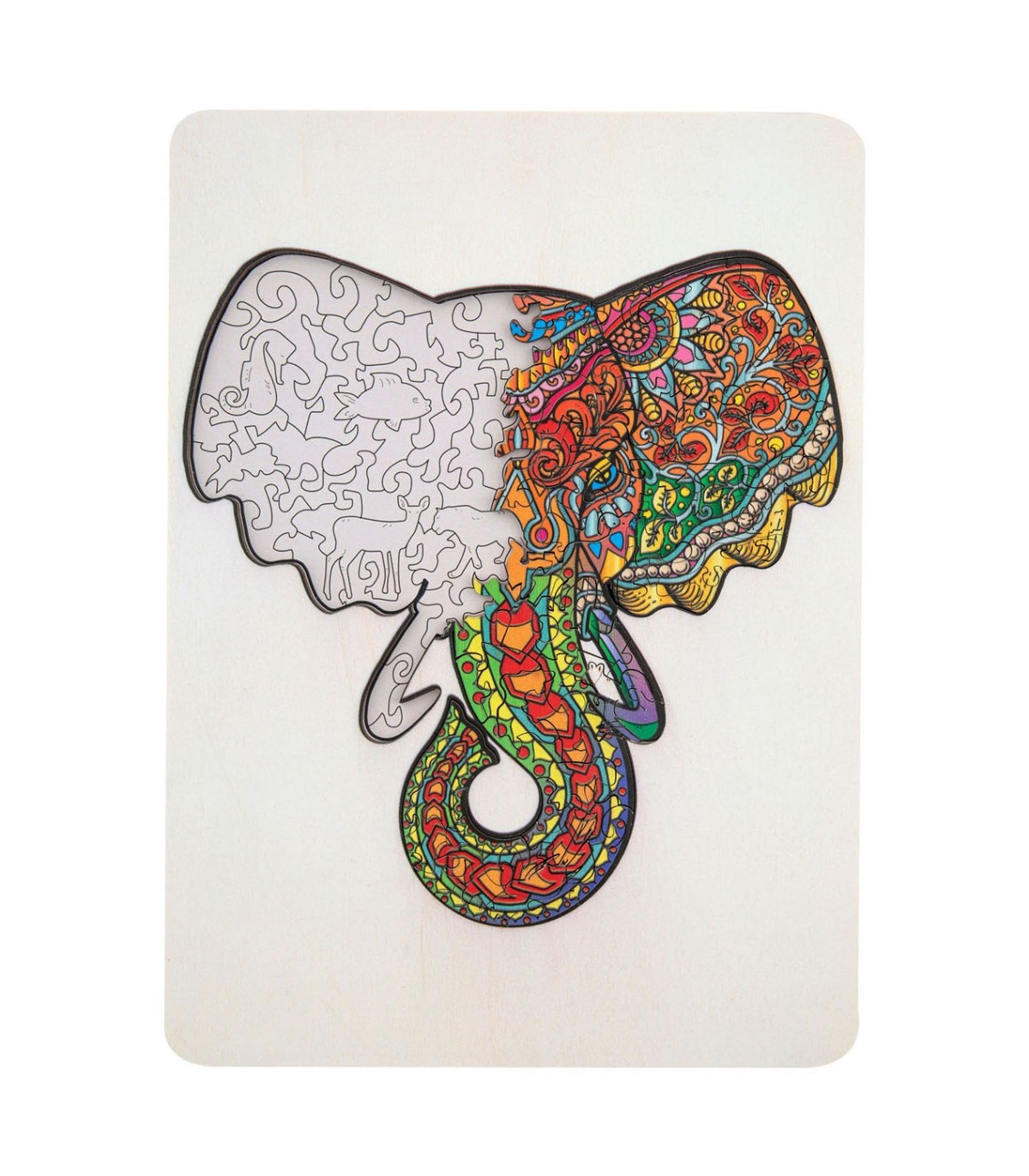 Puidust pusle on valmistatud ainulaadsetest ja ebakorrapärastest tükkidest. Tükid on vormitud väga erinevalt, mille hulgas on ka loomafiguuride kujulisi tükke.