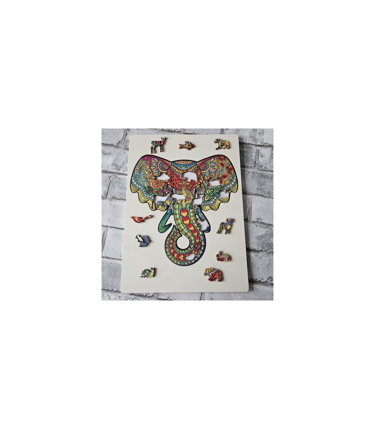 Kui olete pusle kokku saanud, siis saate kauni raamitud tulemuse asetada kapile või riiulil. Komplekti kuulub raam koos jalgadega.