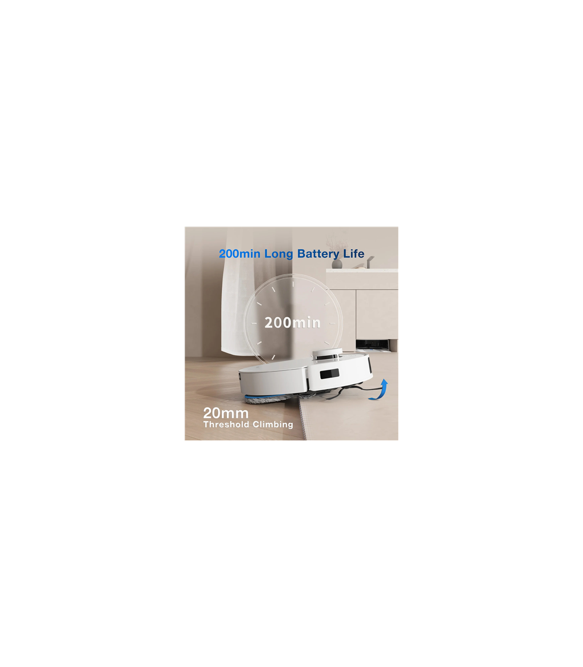 * 11 000 Pa imemisvõimsus ja OZMO Turbo 2.0 kahe pöörleva mopi süsteem tagavad laitmatu puhtuse, 9 mm automaatne mopi tõstmine