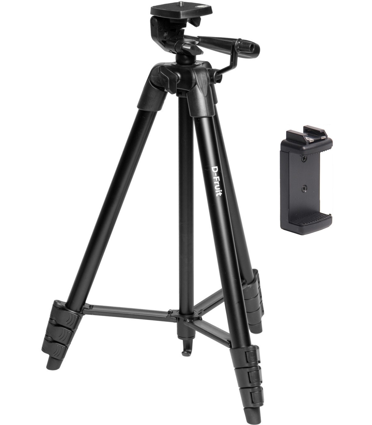 D-Fruit 204 statiiv on kerge ja kompaktne universaalne statiiv hübriid- ja peegelkaameratele. Komplektis on universaalne nutitelefoni hoidik. Adapteril on cold shoe kinnitus ja kaks 1/4" keeret, mis võimaldavad telefoni statiivile kinnitada horisontaalselt või vertikaalselt. Hoidik sobib kasutamiseks telefonidega, mille laius on 58–89 mm.