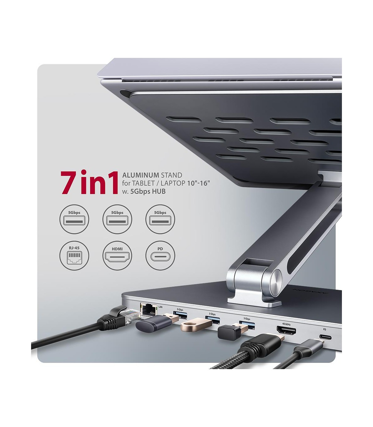 - - USB-C hub and stand- USB-C cable 60 cm long- multilingual manual