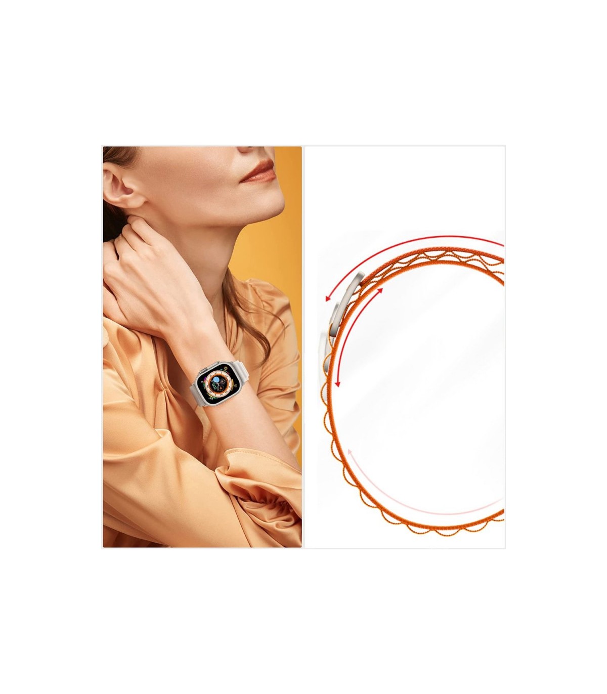Mugav tekstiilist kellarihm Apple Watch 42 mm, 44 mm, 45 mm ja 49 mm nutikelladele. Sobita nutikell oma isikliku stiiliga – vali lemmikvärv või vaheta rihma vastavalt meeleolule ja riietusele.