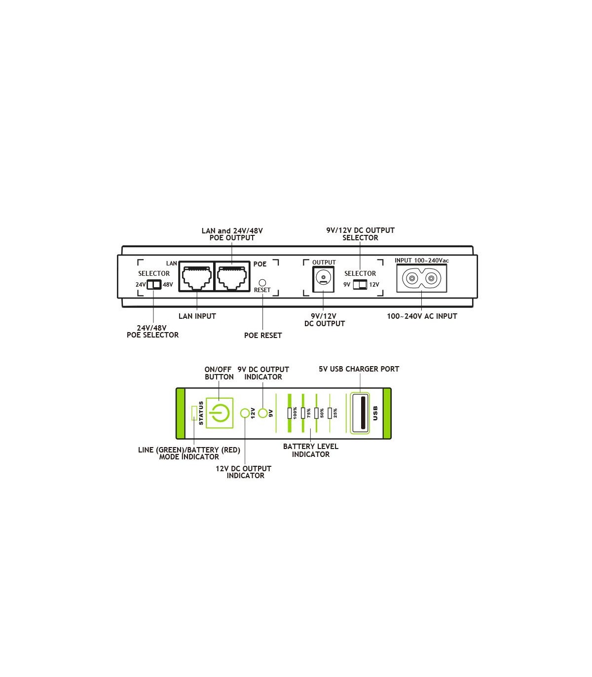 - AC Input cable - DC output cable with 5,5x2,5 mm 2 connectors - 8 connectors